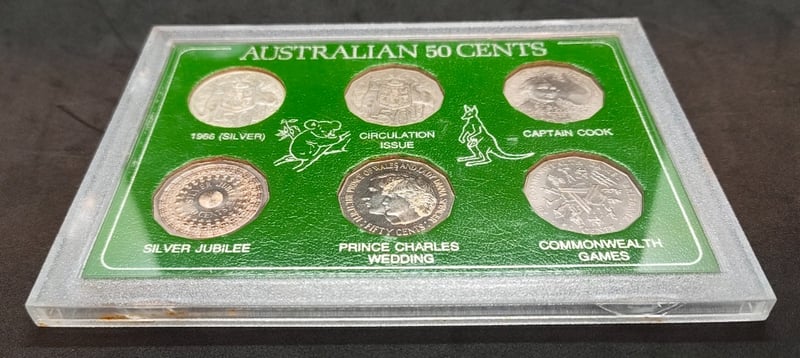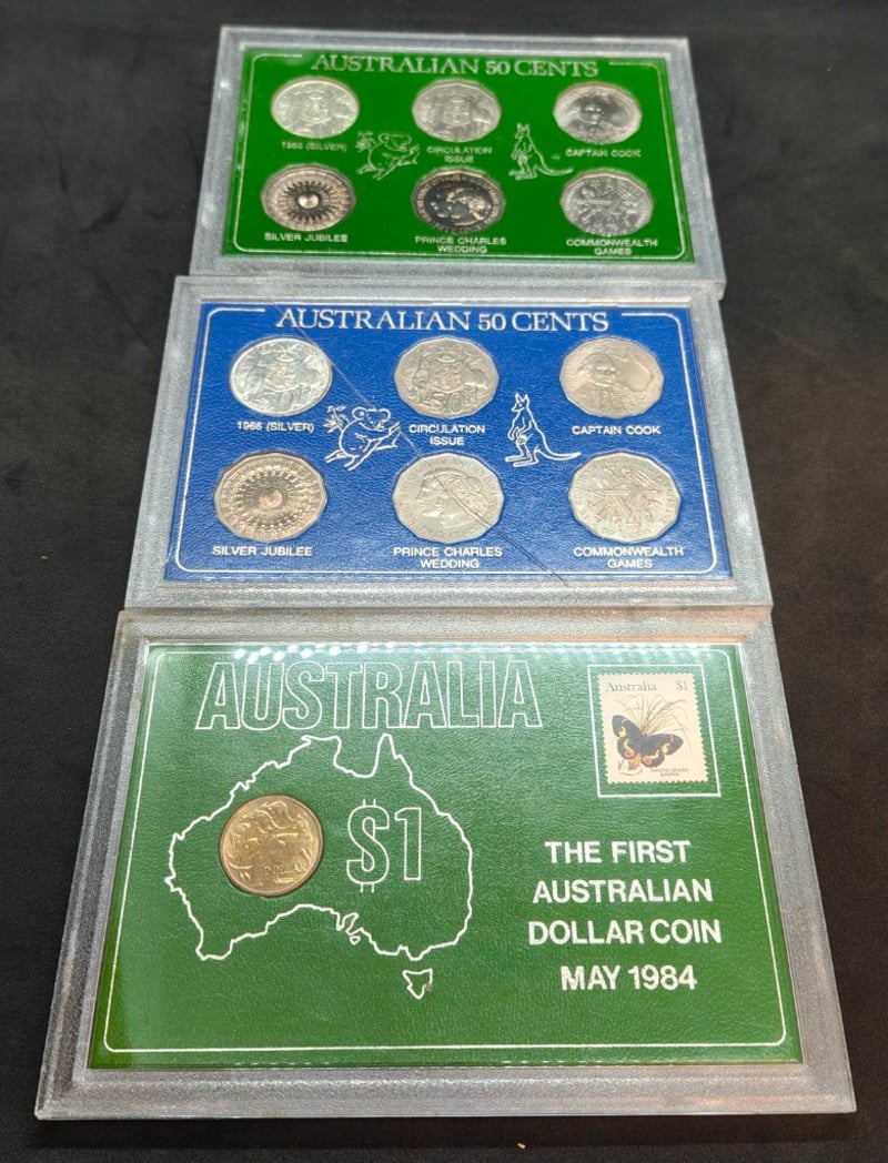COLLECTION OF AUSTRALIAN 50 CENT SIX COIN SETS, THE FIRST AUSTRALIAN DOLLAR COIN AND THE LAST ISSUED AUSTRALIA ONE DOLLAR NOTE.Includes: 2X Australian 50 Cent Six Coin SetThe First Australian Dollar Coin May 1984The Last Issued Australia One Dollar NoteCondition: Unc584429+105