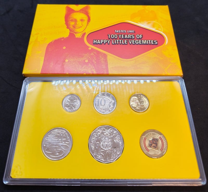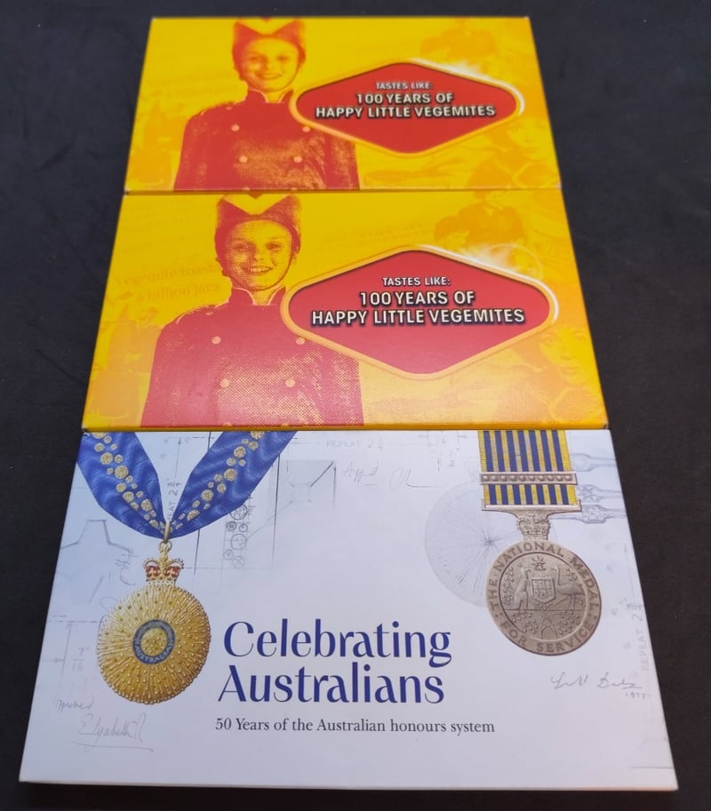 COLLECTION OF AUSTRALIAN UNCIRCULATED COMMENRATIVE COINSCollection Includes: 2023 100 Years Of Happy Little Vegemites 6 Uncirculated Coin Set2023 100 Years Of Happy Little Vegemites 5/6 Uncirculated Coin Set (Please Note That This Set Is Missing The Main Vegemite Feature Coin)2025 Celebrating Australians 50 Years Of The Australian Honours System Six Coin Uncirculated Year Set.Condition: Unc584429+112