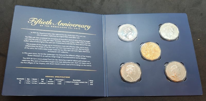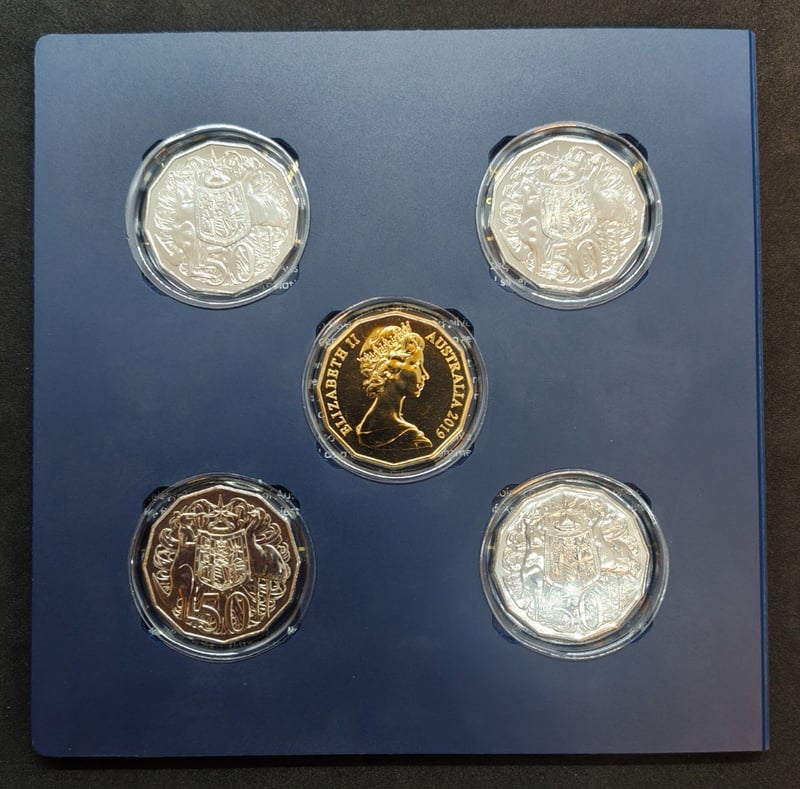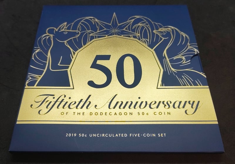 2019 FIFTIETH ANNIVERSARY OF THE AUSTRALIAN DODECAGON 50 CENT COIN FIVE-COIN SETCondition: Unc584429+121