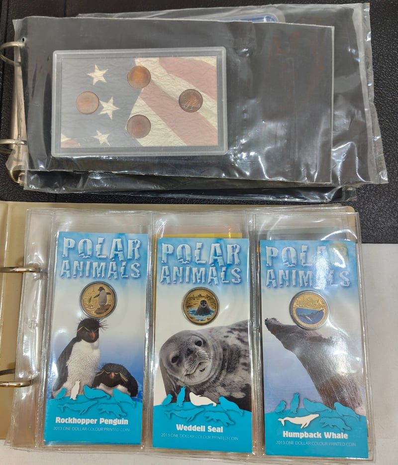 FOLDERS CONTAINING VARIOUS COLLECTOR COINS AND MEDALS