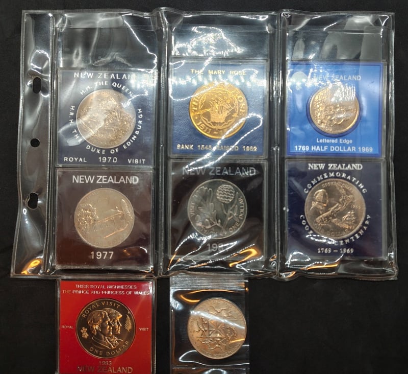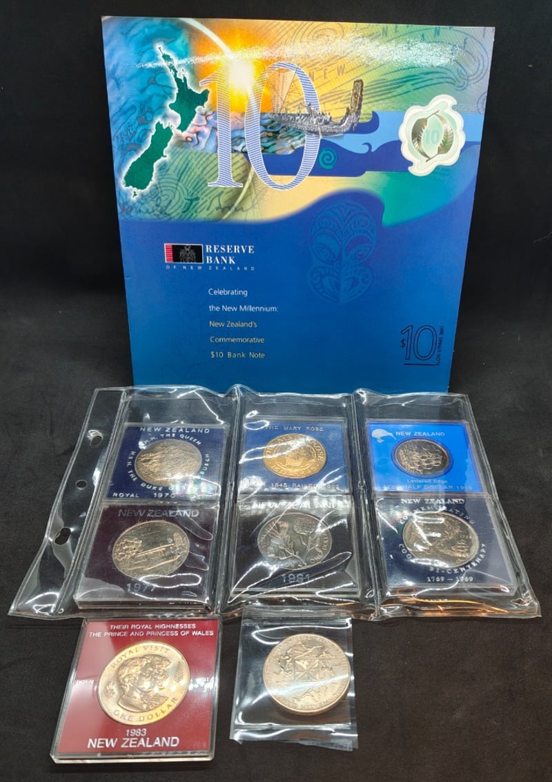 NEW ZEALAND 2000 $10 POLYMER COMMEMORATIVE MILLENNIUM BANKNOTE AND SET OF NEW ZEALAND COMMENRATIVE ONE DOLLAR COINS584429+129