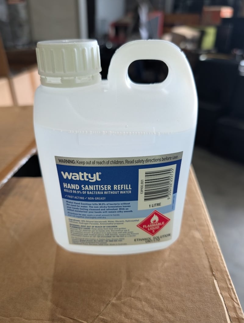 Pallet Lot Of Wattyl Hand Sanitizer Refills, 1L and 500ml Bottles Note: Sold As Lot