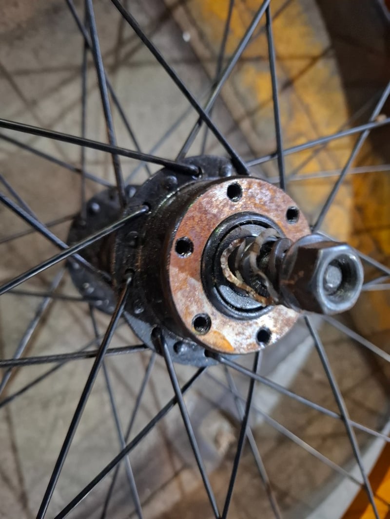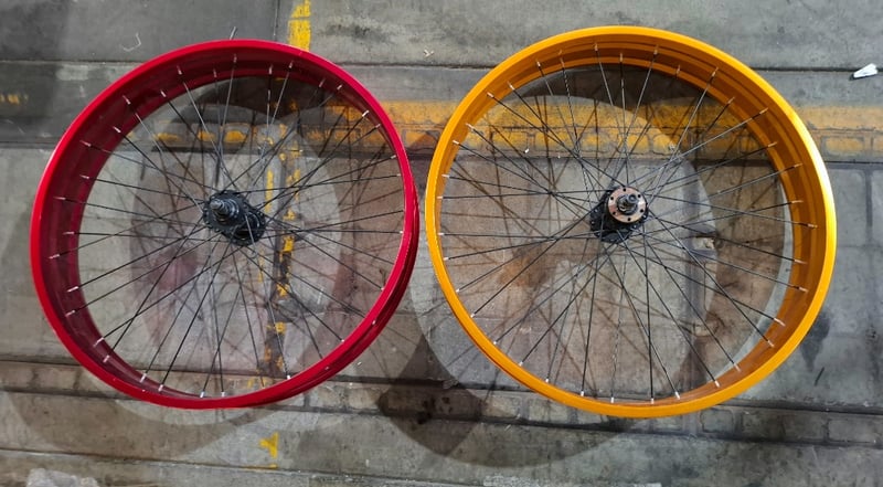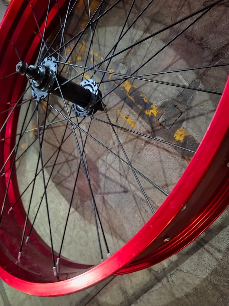 2 x Aluminium coloured bicycle wheels, 22. 6 inches