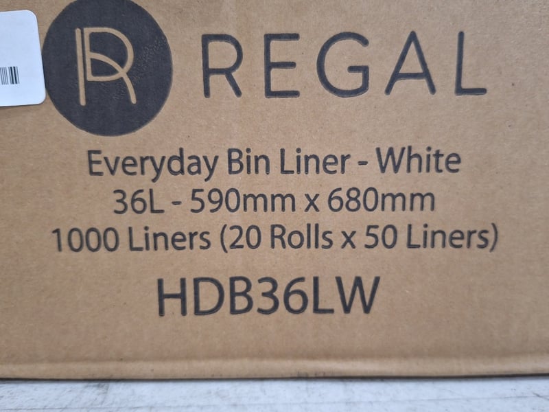 Regal, Everyday Bin Liners, 36L, 590mm x 680mm, 1000 Liners, 20x Rolls x 50 Liners Sold As Lot
