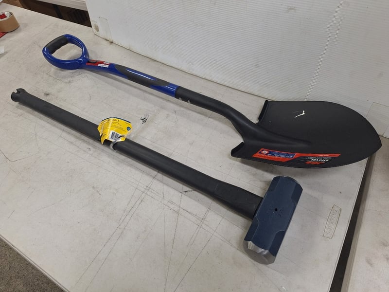 JBS Fibreglass Handled Sledgehammer And Round Mouth Shovel Sold As Lot