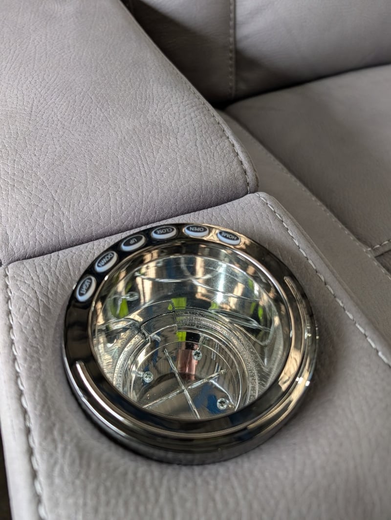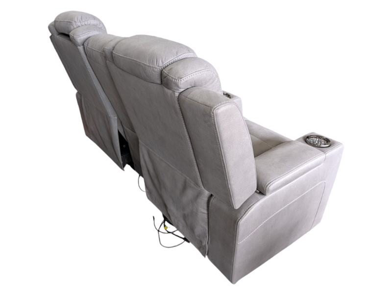 3 Seater Light Grey, Fabric Upholstery Electric Recliner Dimensions Approximately: 200cm(W) x 100cm(H) x 100cm(D)Note: Some Marks, Working Condition Unknown