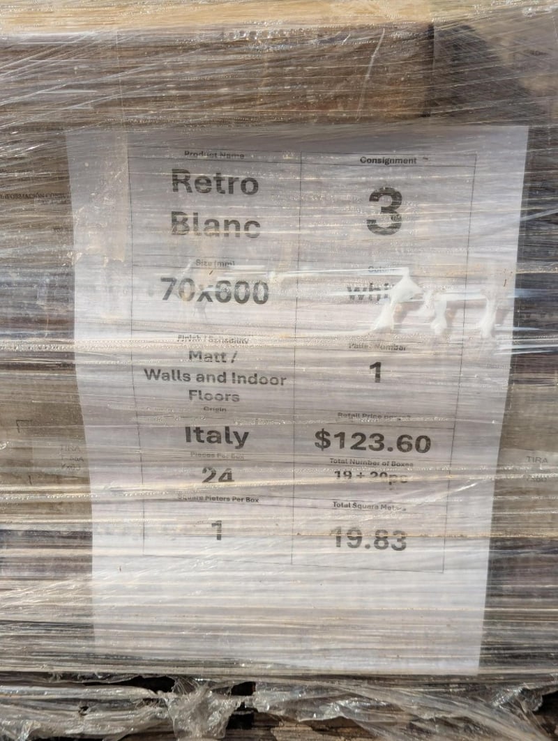 Wall and Indoor Floor Tiles, Retro Blanc, White Colour, Italy Origin, Approximate Quantity of 476 Tiles, (19.83 Total Square Meters)Approximate Dimensions: 70mm x 600mmSOLD AS LOT
