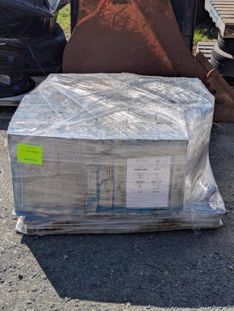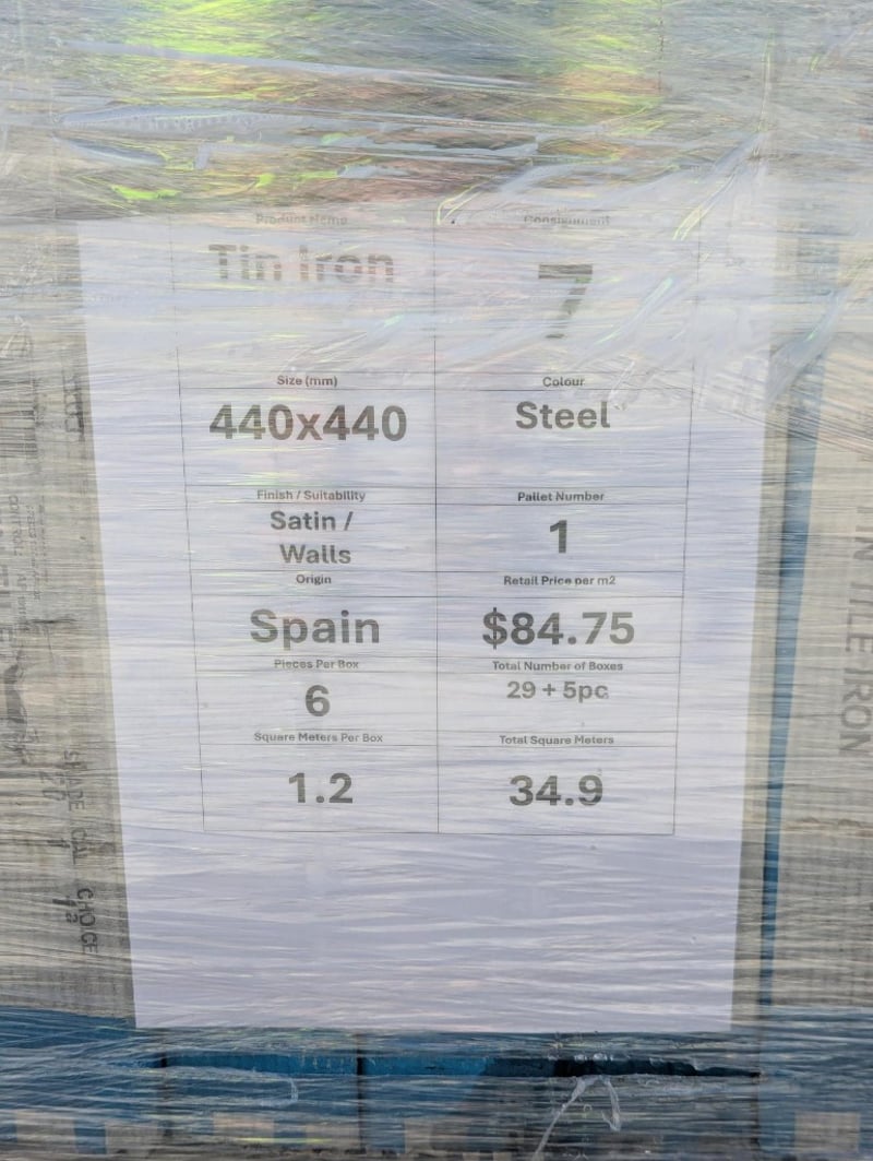 Wall Tiles, Tin Iron, Steel Colour, Spain Origin, Approximate Quantity of 179 Tiles, (34.9 Total Square Meters)Approximate Dimensions: 440mm x 440mmSOLD AS LOT