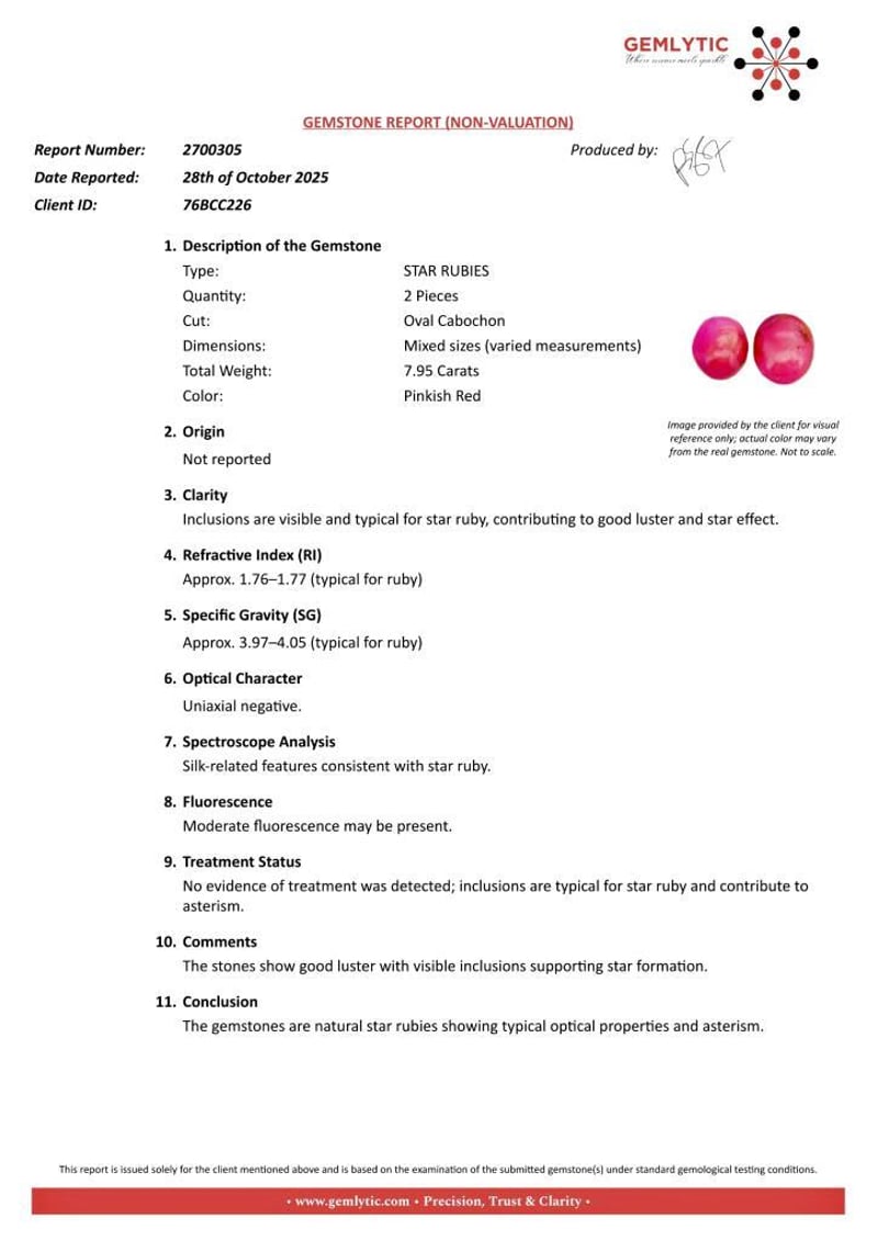 Conclusion: The Gemstones Are Natural Star Rubies Showing Typical Optical Properties And Asterism.
