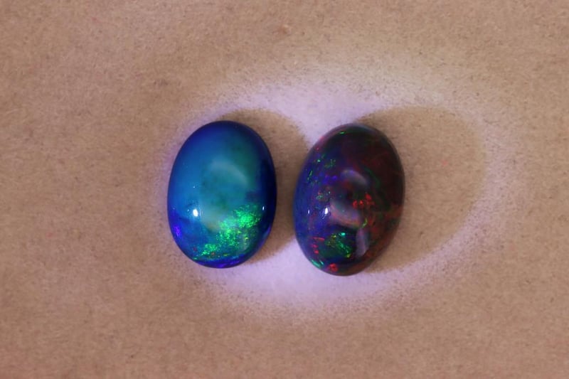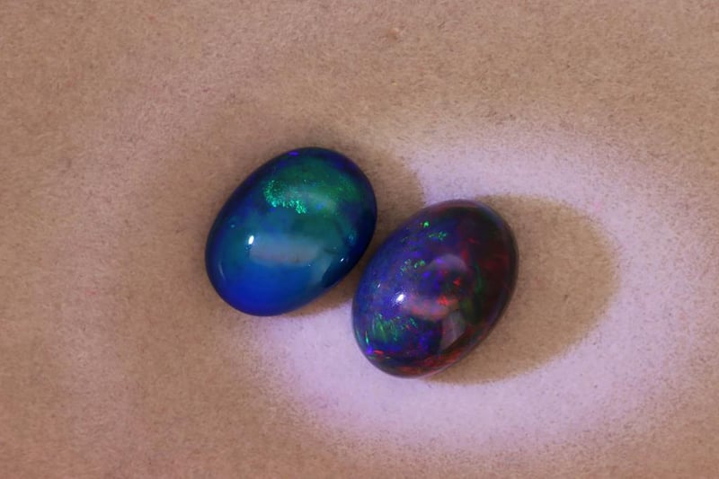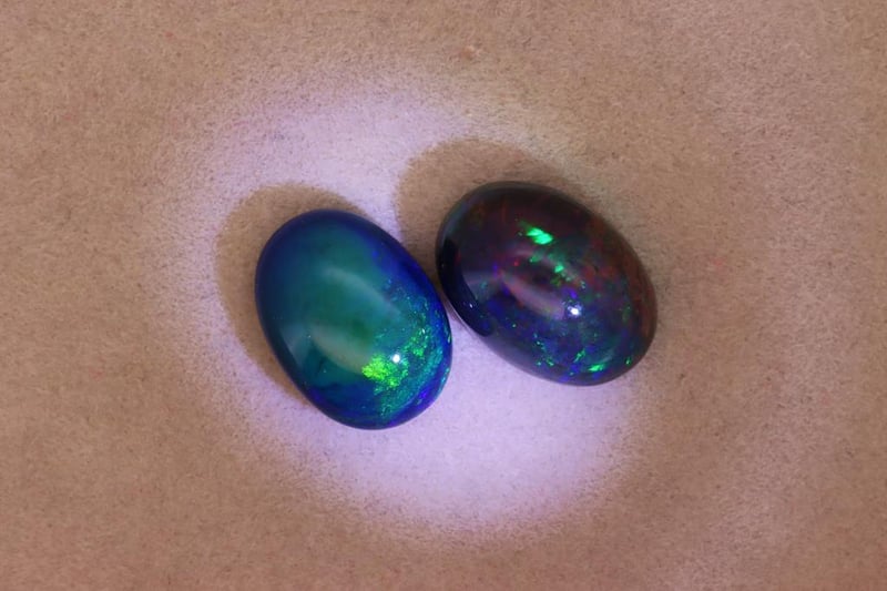 OPALS - 8.02 CARATS - BLACK WITH PLAY OF COLORS Quantity: 2 PcsReport Number: 2700360Clarity: Opaque With Strong Body Color And Clean Surface FinishMeasurements: Mixed SizesTreatments: No Evidence Of Treatment Was Observed. Black Opals Are Generally Untreated.Origin: Not ReportedRefractive Index: Approx. 1.37–1.47 (Typical For Opal)Specific Gravity: Approx. 1.98–2.20 (Typical For Opal)Spectroscope Analysis: Diffraction-Related Spectral Response.Fluorescence: Weak To Moderate Fluorescence.Comments: This Pair Of Opals Exhibits Vibrant Play-Of-Color Across The Cabochon Surfaces.Conclusion: The Gemstones Are Natural Black Opals Displaying Typical Play-Of-Color Phenomena. Condition: Good - Refer Images 0488985+63
