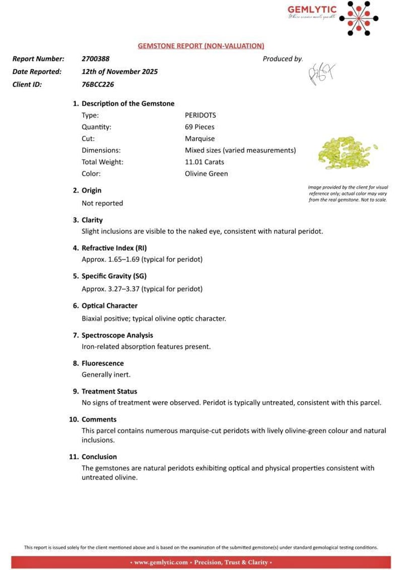 Comments: This Parcel Contains Numerous Marquise-Cut Peridots With Lively Olivine-Green Colour And Natural Inclusions.
