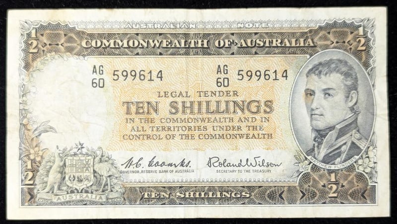 COMMONWEALTH OF AUSTRALIA TEN SHILLING BANKNOTE SIGNED BY COOMBS/WILSON