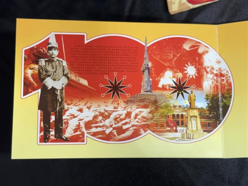 1911–2011 CHINESE REVOLUTION 100TH ANNIVERSARY COMMEMORATIVE BANKNOTE SETProvenance: A Commemorative Presentation Set Celebrating The 100Th Anniversary Of The Chinese Xinhai Revolution (1911–2011). The Set Includes A Commemorative 100 Denomination Banknote Displayed In A Protective Presentation Folder Along With A Commemorative Coin Mounted Above The Note.The Banknote Features A Portrait Of Sun Yat-Sen, A Key Figure In The Revolution And Founding Father Of Modern China. The Presentation Folder Is Decorated With Historical Imagery And Scenes Relating To The Revolution And Its Legacy, Including Monuments And Patriotic Imagery.SR233569+1