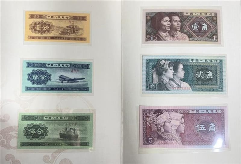 CHINESE COMMEMORATIVE BANKNOTE & COIN COLLECTION ALBUMDecorative Commemorative Currency Album, Multiple Chinese Banknotes Mounted For Display, Selection Of Chinese Yuan Coins In Protective Holders, Ornate Presentation Booklet With Floral Artwork And Chinese Text, Collector Display Style Format.SR233569+2