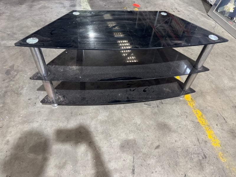 Glass tv stand Dimensions: 110cm x 40cm x 51cmNote: cleaning required