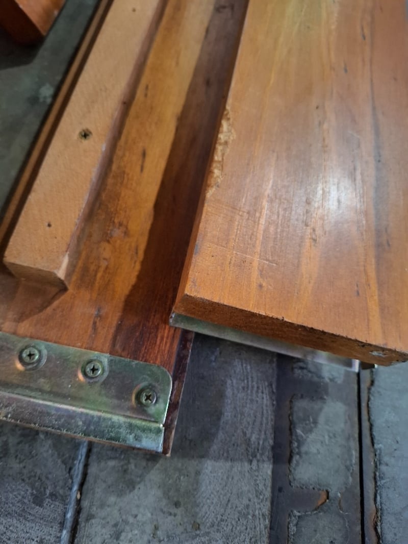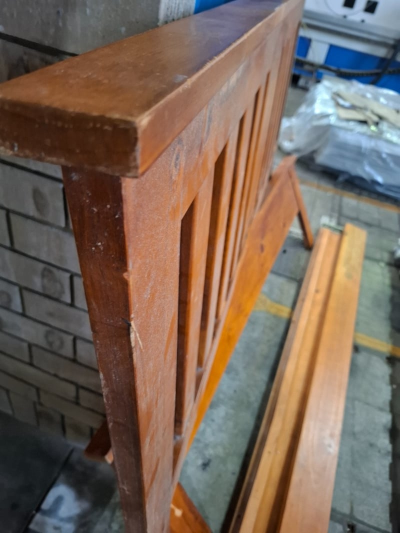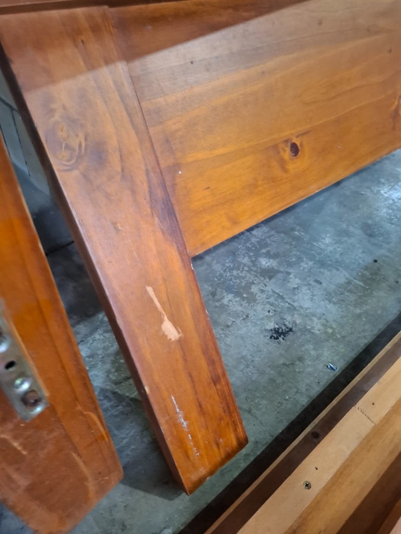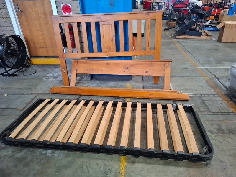 Timber Queen bed frameNote: Disassembled, scuff and marks