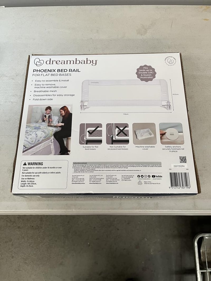 Dreambaby Phoenix Toddler Bed Rail - Measures 110cm Wide x 45.5cm Tall (Model F719) - White - RETAIL RETURN BRAND NEW (BOX UNOPENED)