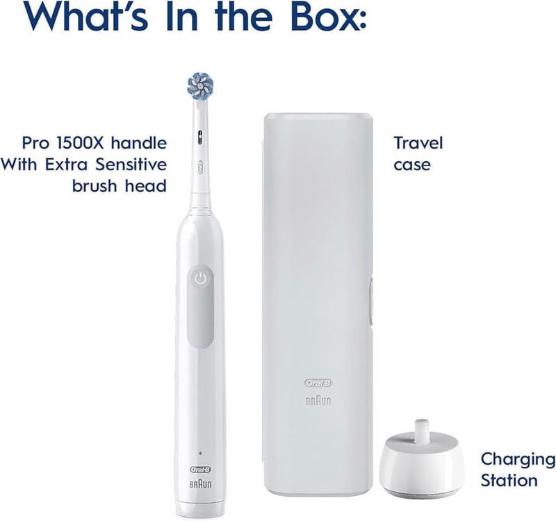 RRP $129 Oral-B Pro 1500X Electric Toothbrush - White - REFURBISHED WORKING VERY GOOD CONDITION (LIGHT USE (MISSING TRAVEL CASE/U.S. PLUG))