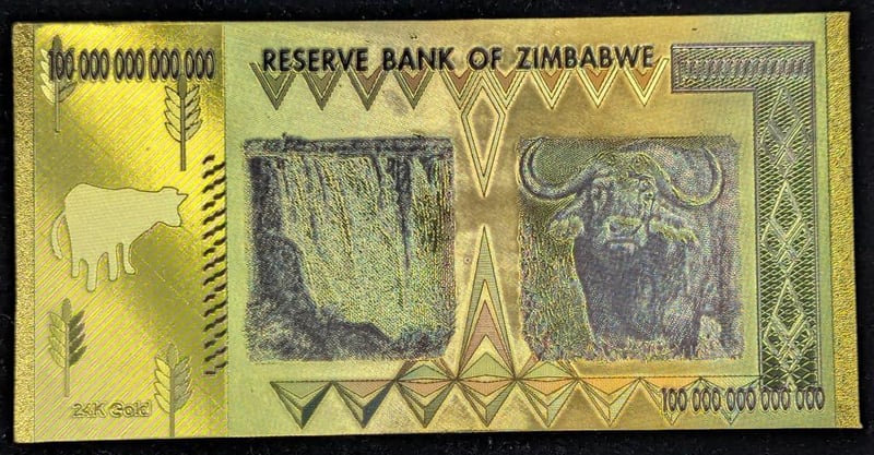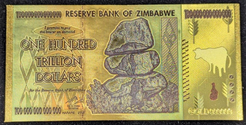 FAUX GOLD ZIMBABWE ONE HUNDRED TRILLION DOLLAR BANKNOTE 587885+33
