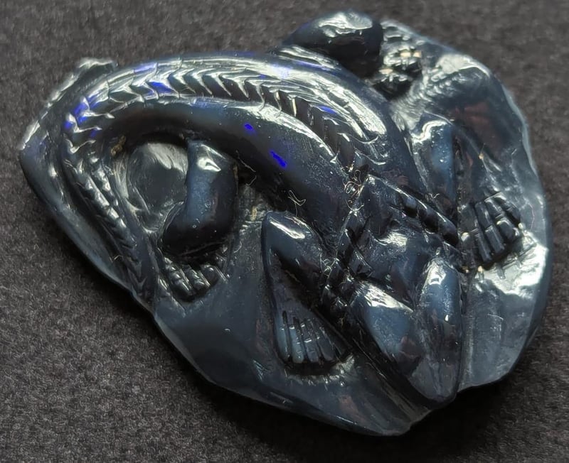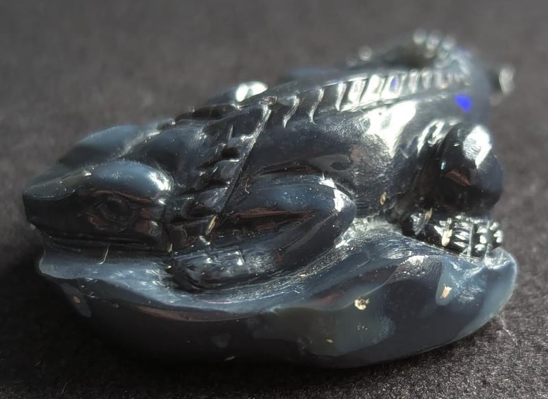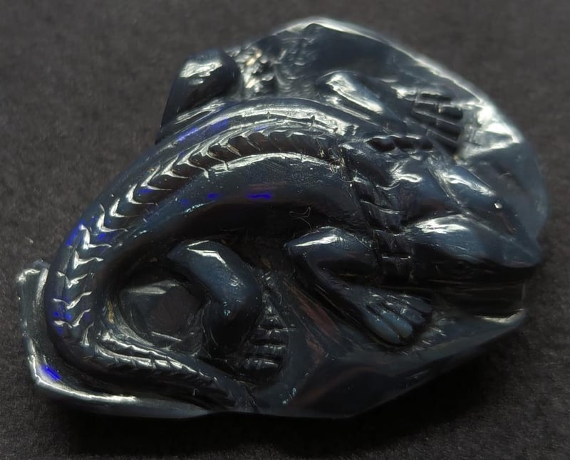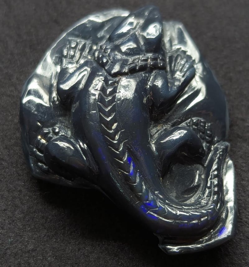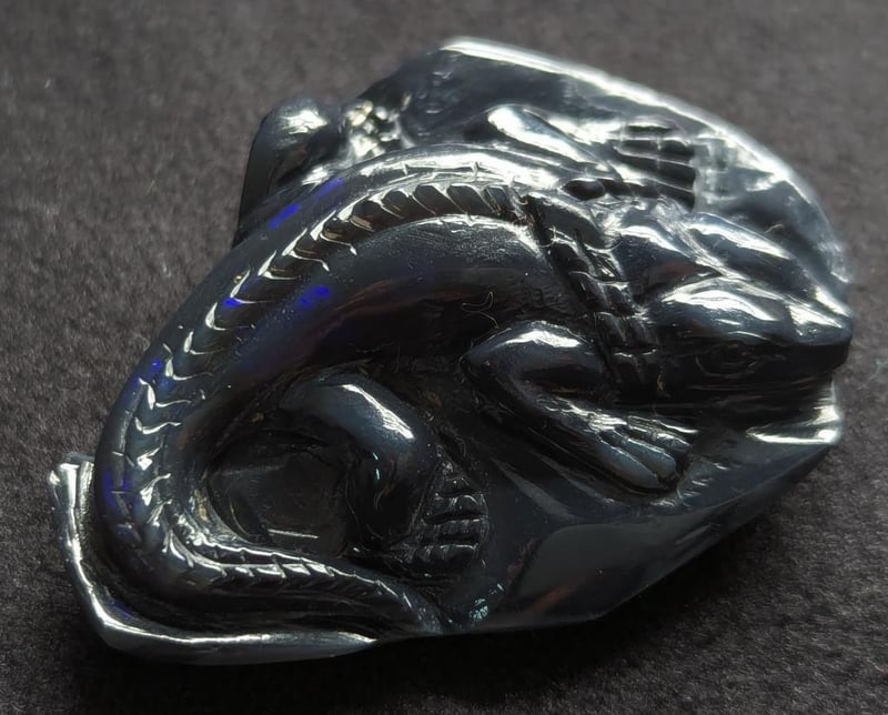 55.72CT CARVED LIZARD BLACK OPAL 0 587886+1