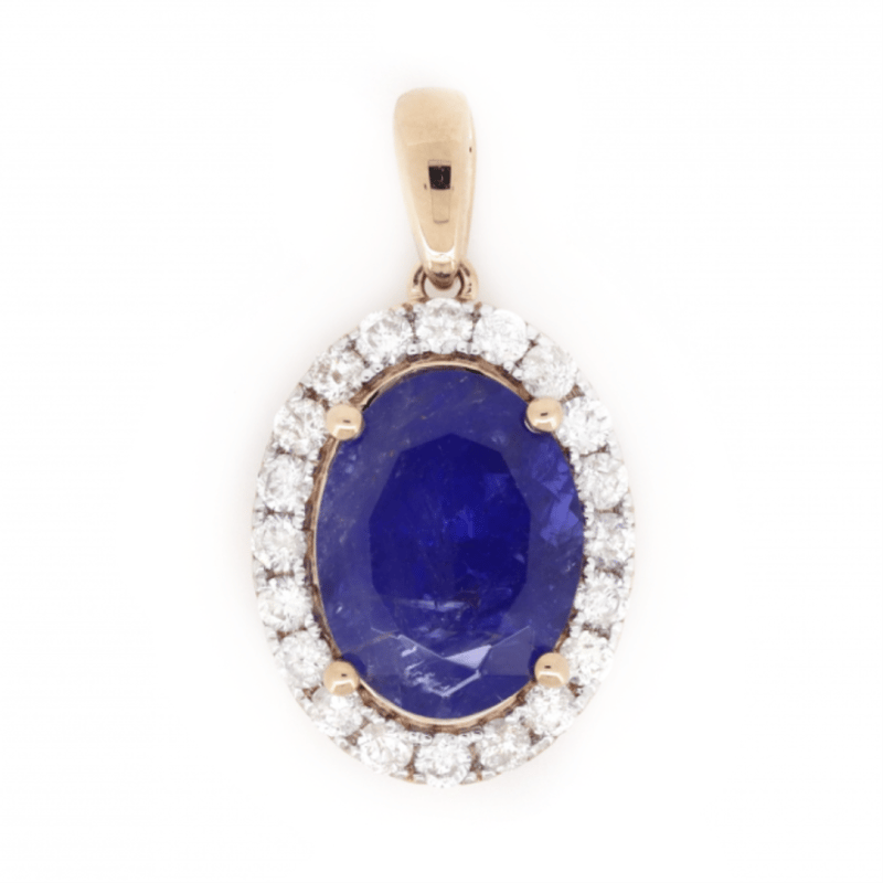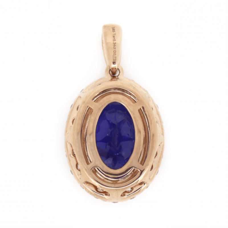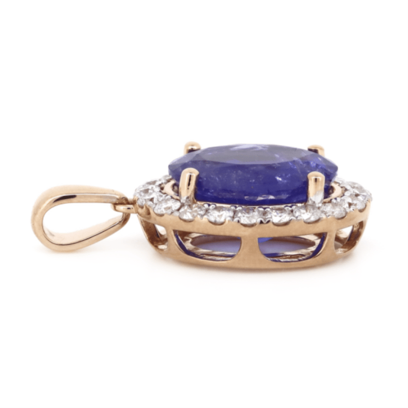 14K ROSE GOLD, TANZANITE AND DIAMOND, HALO PENDANT
