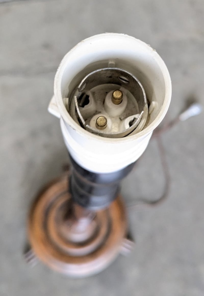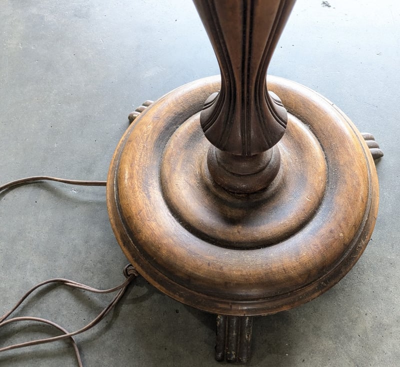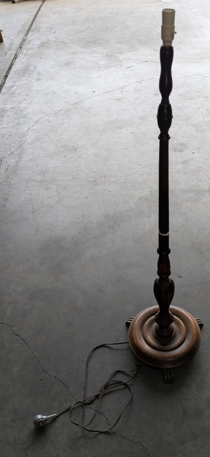 WOODEN FLOOR LAMP WITH BASE Item Size: Height: 152cm, Width: 42cm, Depth: 42cm Condition: Fair - Refer To Images 585104+3
