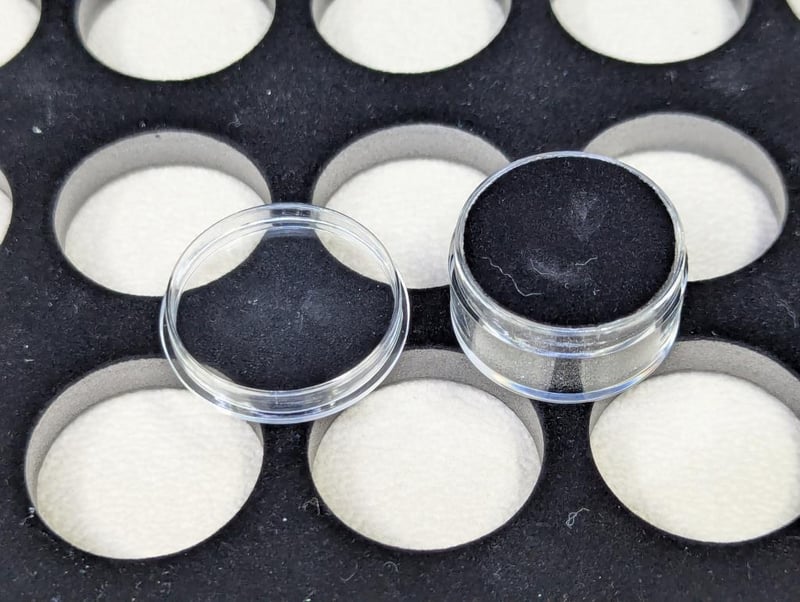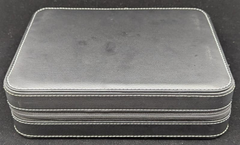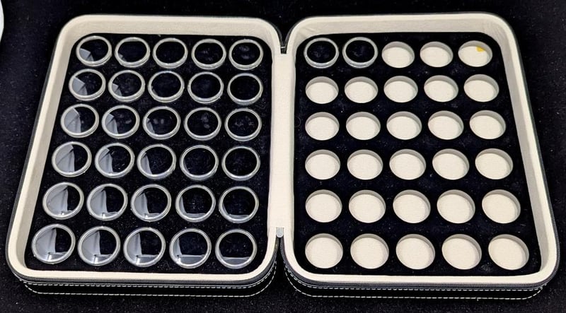 GEMSTONE DISPLAY FOLDER WITH 32 PLASTIC DISPLAY CASES Black Folder With Sixty Slots For Round Display Cases, Zip Closure 0587886+29