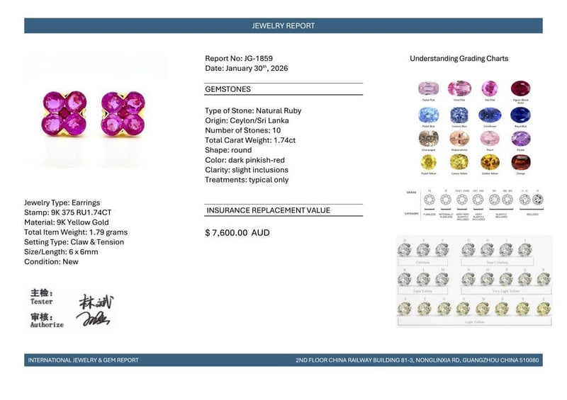 9CT YELLOW GOLD CEYLON RUBY FLORAL STUD EARRINGS Featuring, 10 Round Cut, Dark Pinkish-Red Ceylon Rubies (1.74Ct Tsw, Slight Inclusions), Claw/Tension Set. Valuations Provided by an Independent Third-Party Professional Not Directly Associated With Lloyds Auctions at AUD $7600This valuation has been conducted by an independent third-party professional. The valuation amount is an assessment by the issuing valuer and does not reflect the auction value of the item. Any inquiries regarding the valuation should be directed to the issuing valuer (refer to contact details on the certificate), as Lloyds Auctions has no affiliation or influence over the valuation, the valuer, or the stated amount. Condition: Good - Refer Images 0582881+1961