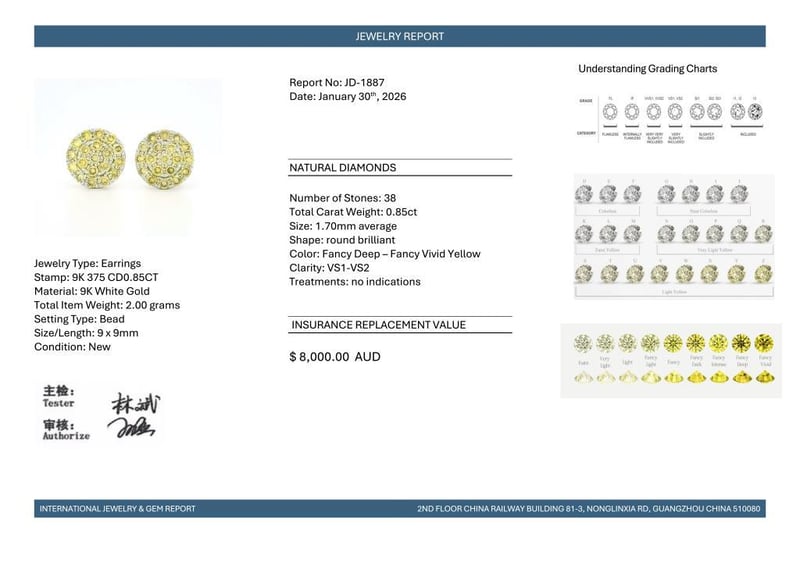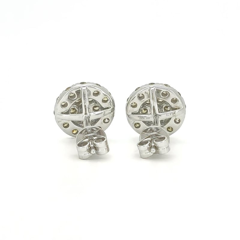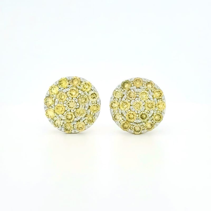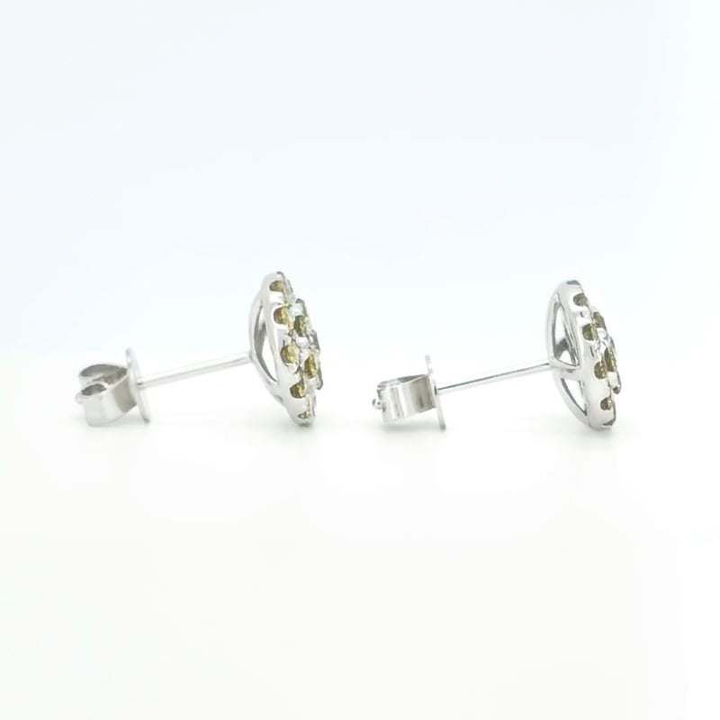 9CT WHITE GOLD FANCY YELLOW DIAMOND HALO STUD EARRINGS Featuring, 38 Round Brilliant Cut, Fancy Deep Yellow - Fancy Vivid Yellow Diamonds (0.85Ct Tdw, Vs1-Vs2 Clarity), Bead Set. Valuations Provided by an Independent Third-Party Professional Not Directly Associated With Lloyds Auctions at AUD $8000This valuation has been conducted by an independent third-party professional. The valuation amount is an assessment by the issuing valuer and does not reflect the auction value of the item. Any inquiries regarding the valuation should be directed to the issuing valuer (refer to contact details on the certificate), as Lloyds Auctions has no affiliation or influence over the valuation, the valuer, or the stated amount. Condition: Good - Refer Images 0582881+1986