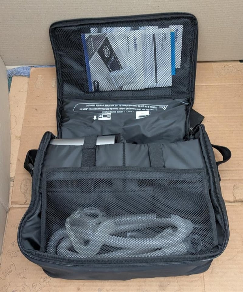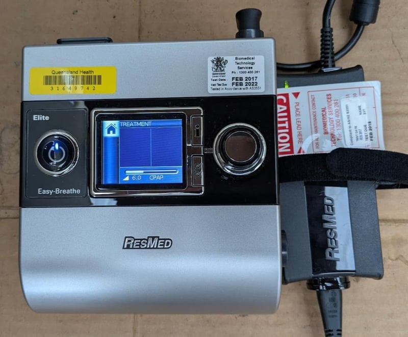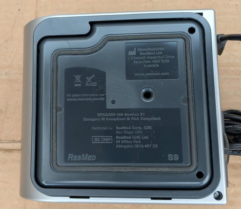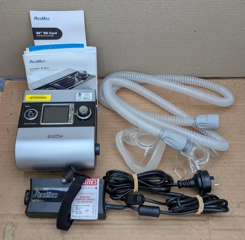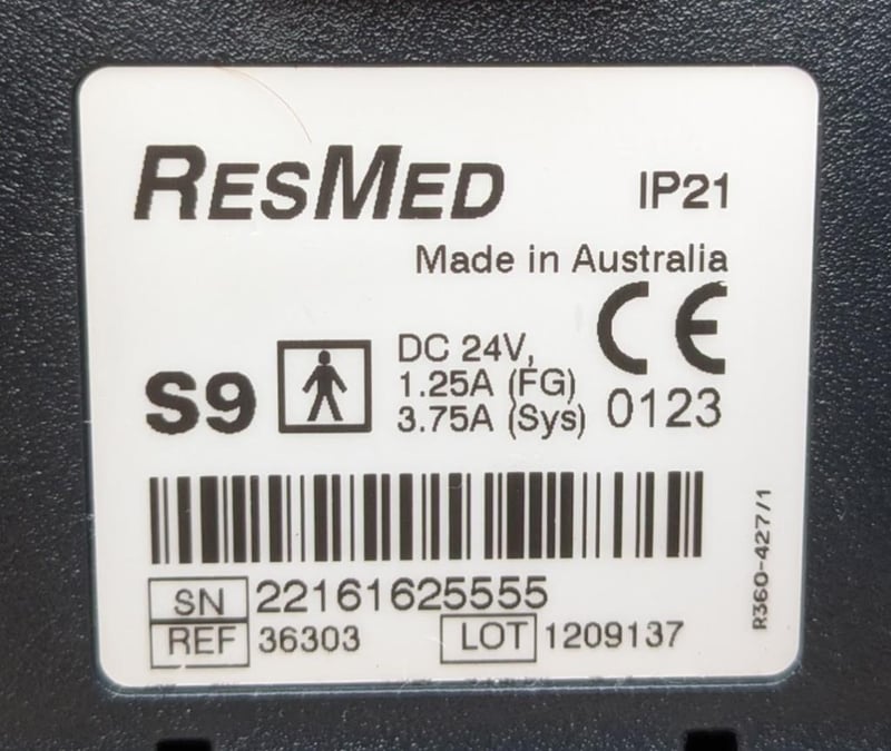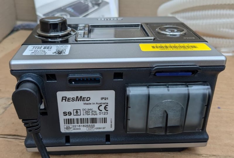 RESMED CPAP S9 machine IP21 with 24V power adapter, breathing hose and carry bag 37x30x12cm