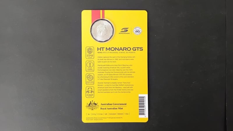 2020 60 YEARS OF SUPER CARS HT MONARO GTS 350 COLOURED COIN IN DISPLAY HOLDER 11600+25