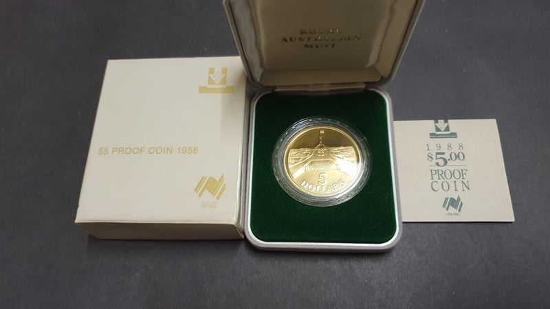 1988 AUSTRALIAN BICENTENNIAL PROOF $5 DOLLAR COIN IN HOLDER 11600+27