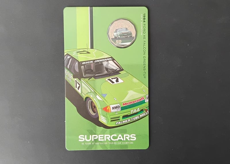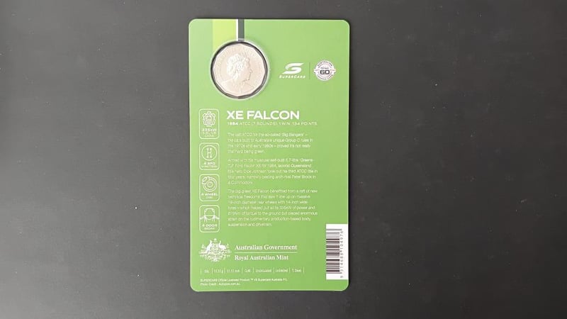 2020 60 YEARS OF SUPER CARS FORD EX FALCON GREENS TUF COLOURED COIN IN DISPLAY HOLDER 11600+30