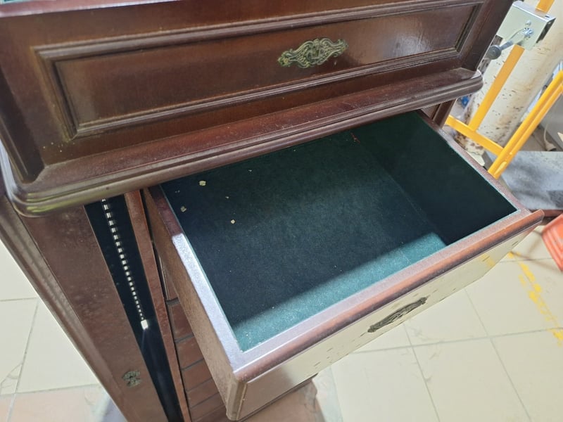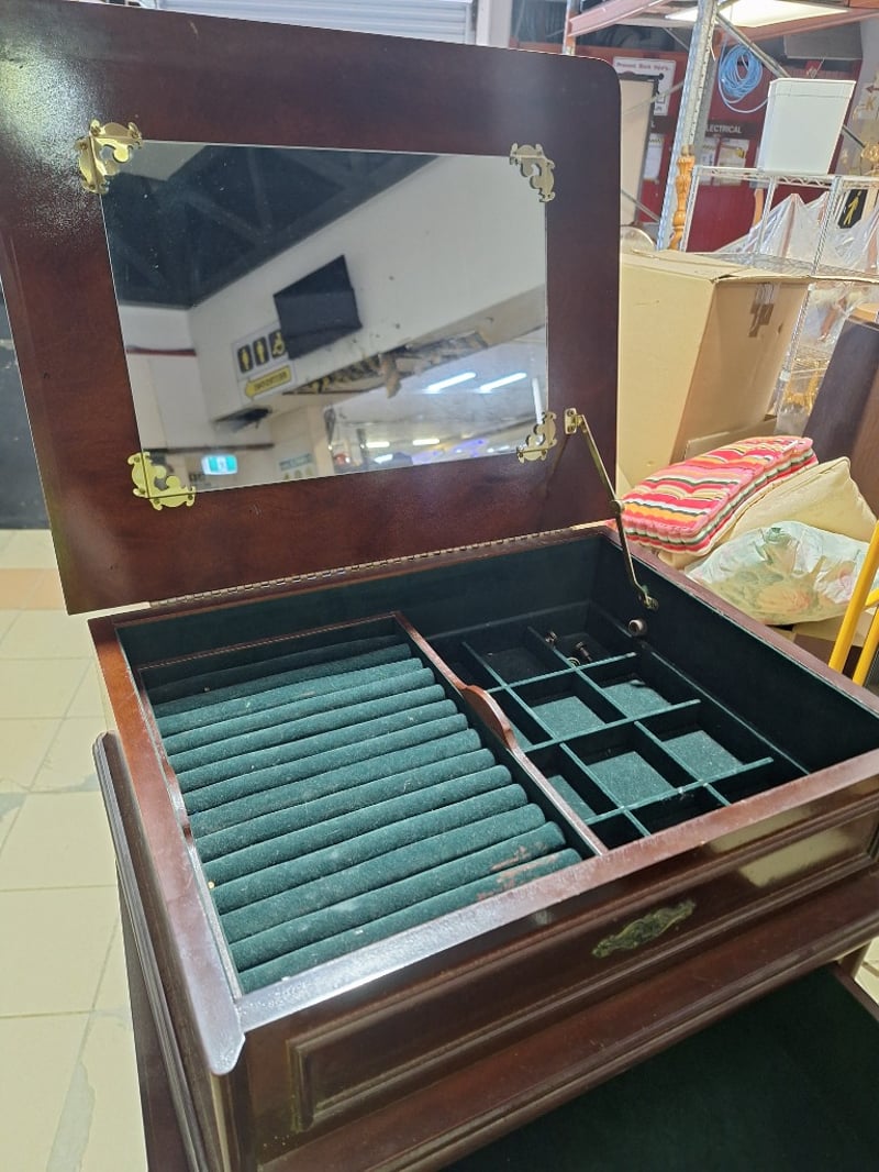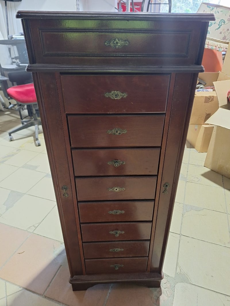 Jewellery Chest With Drawers, Timber Style, Brown Finish Dimensions H:122cm W:49cm D:38cm