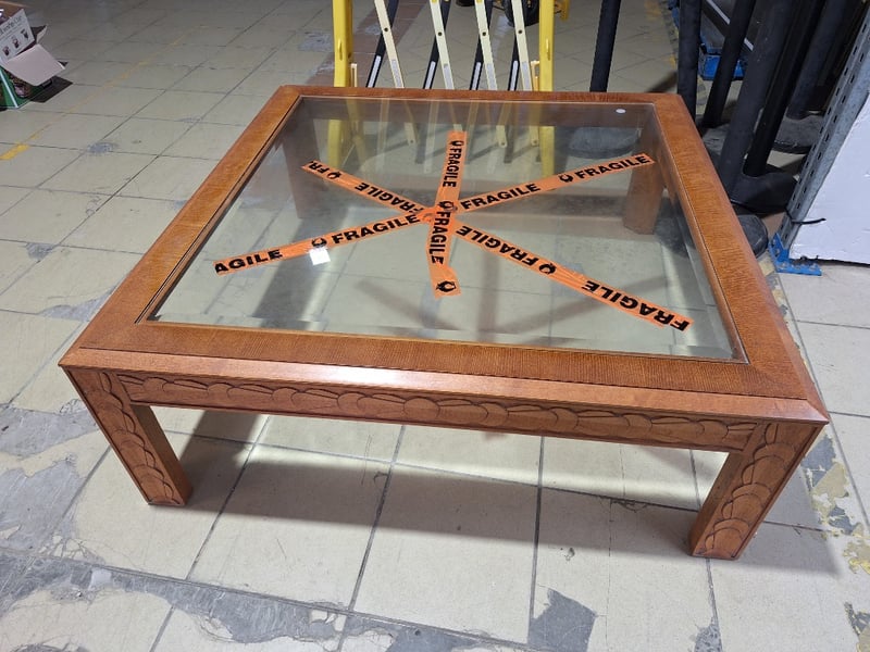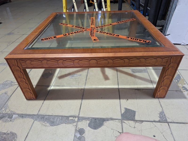 Coffee Table With Glass Top, Timber Style, Natural Finish Dimensions H:43cm W:116cm D:116cm