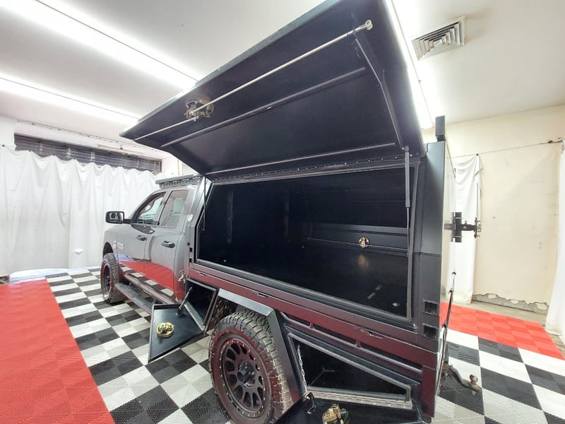 iPlay, Trundle Tray, Roof Racks, Light Bar, Water Tank With Top, Cat Back Exhaust System, Full Back Canopy, Under-Tray Storage Boxes, 2" Lift Kit Surface Rust Towbar, Exterior Panel Scratches.