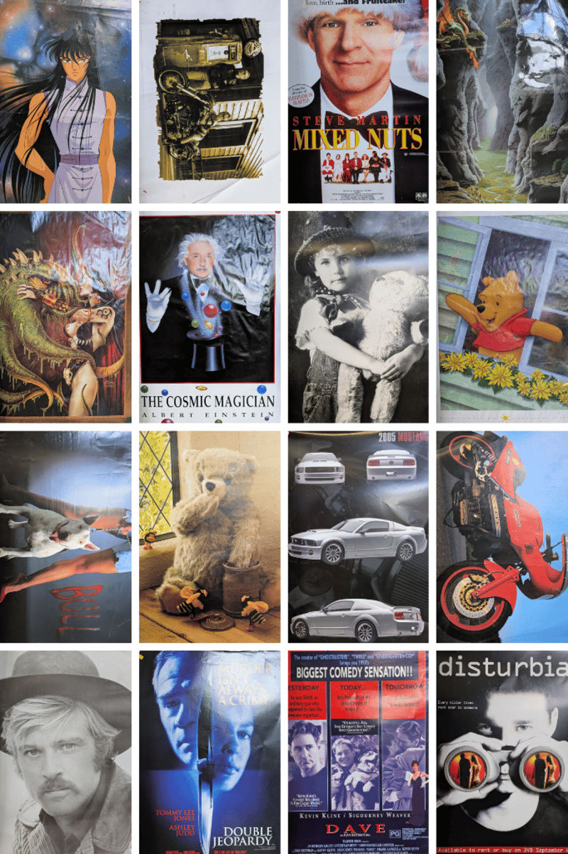 Collection of Posters Featuring Mythical Creatures, Hollywood Movies, Teddy Bear Portraits, and more.