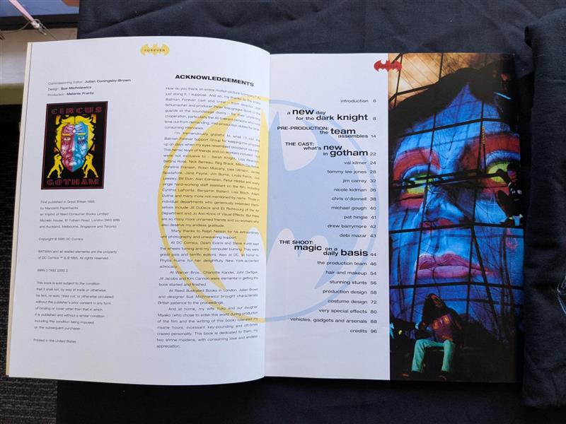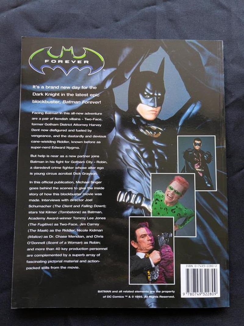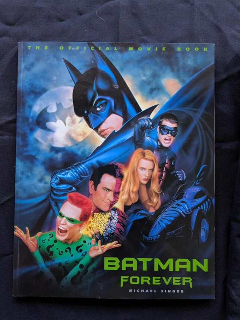 Lot Includes A Copy Of Batman Forever – The Official Movie Book By Michael Singer, Featuring Behind-The-Scenes Content, Film Stills, And Production Details From The 1995 Dc Comics Film Starring Val Kilmer, Jim Carrey, Tommy Lee Jones And Nicole Kidman. Softcover Publication With Full Colour Imagery Throughout.
