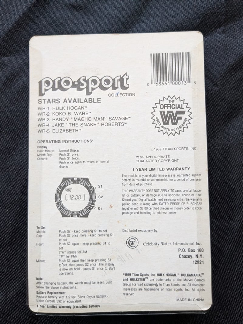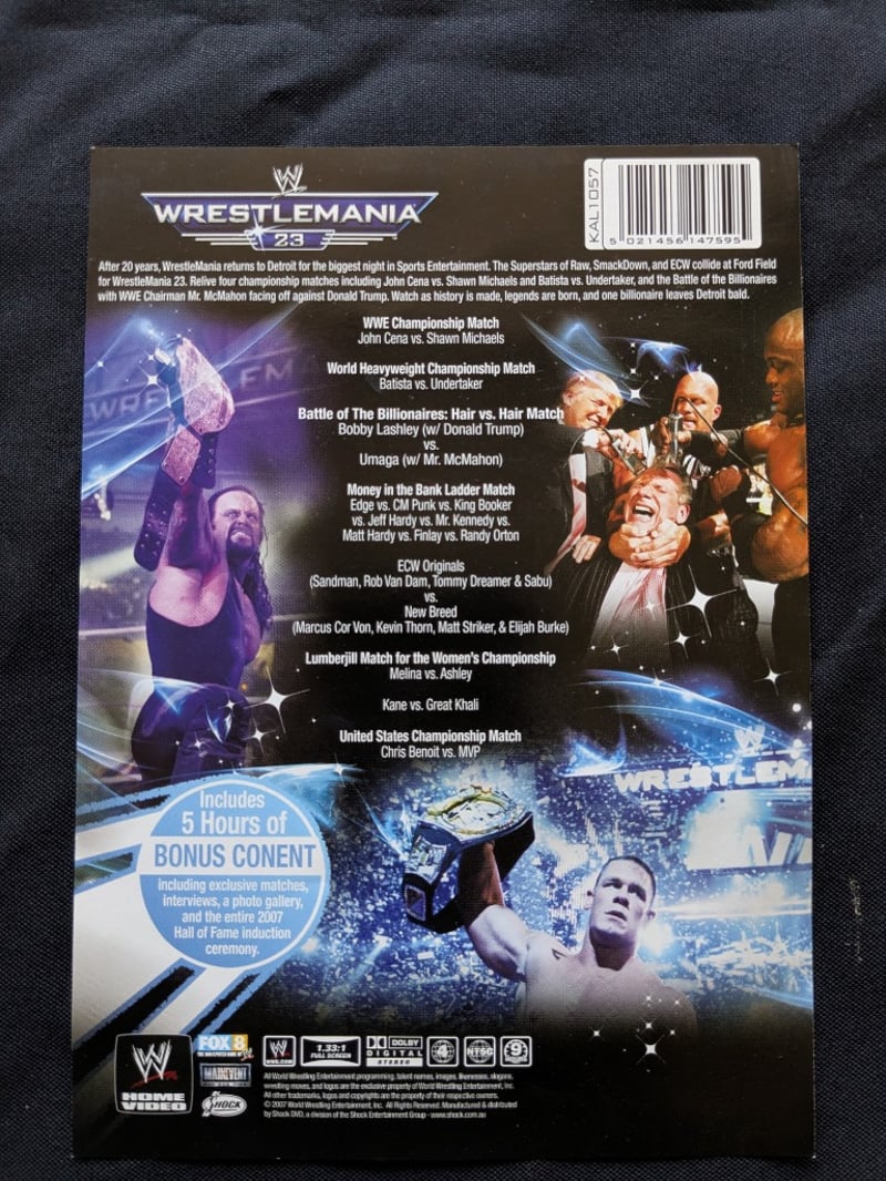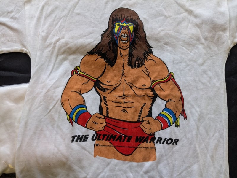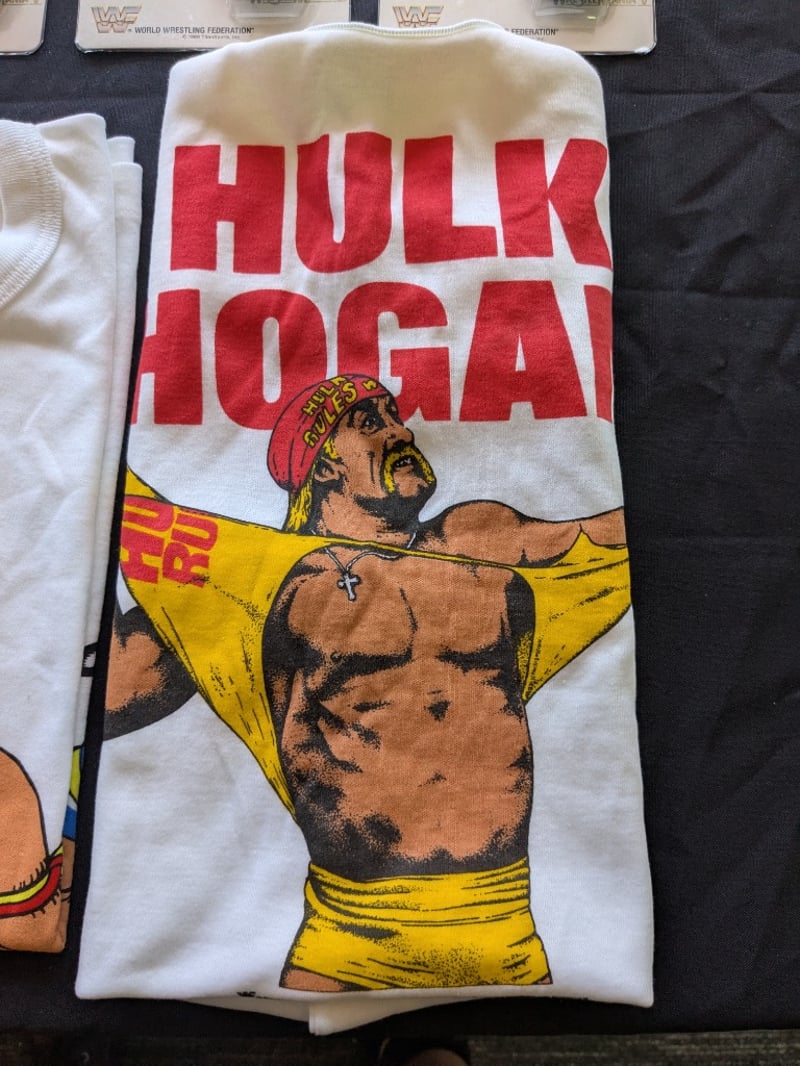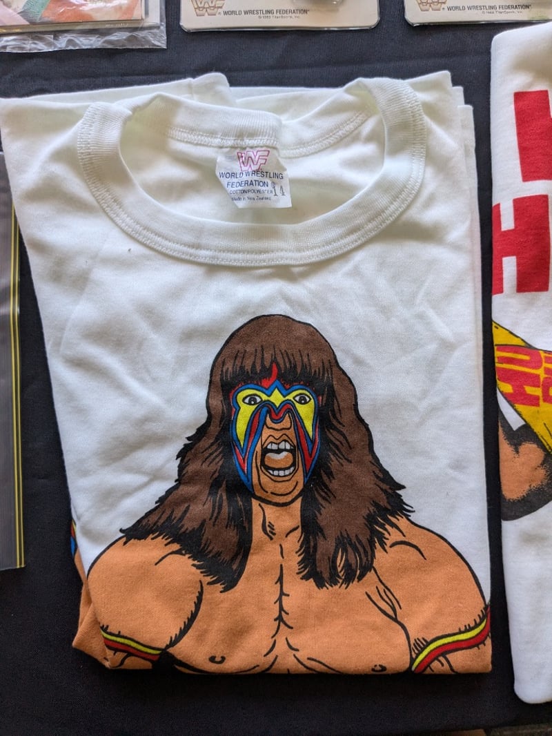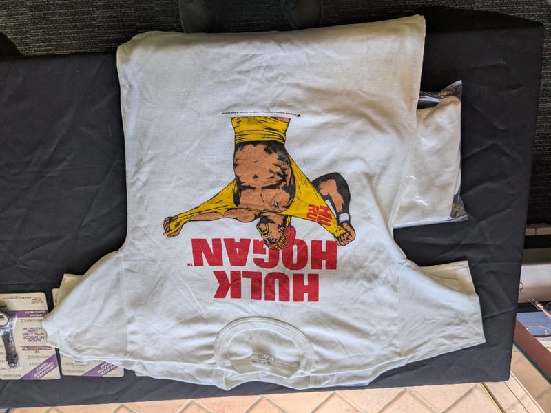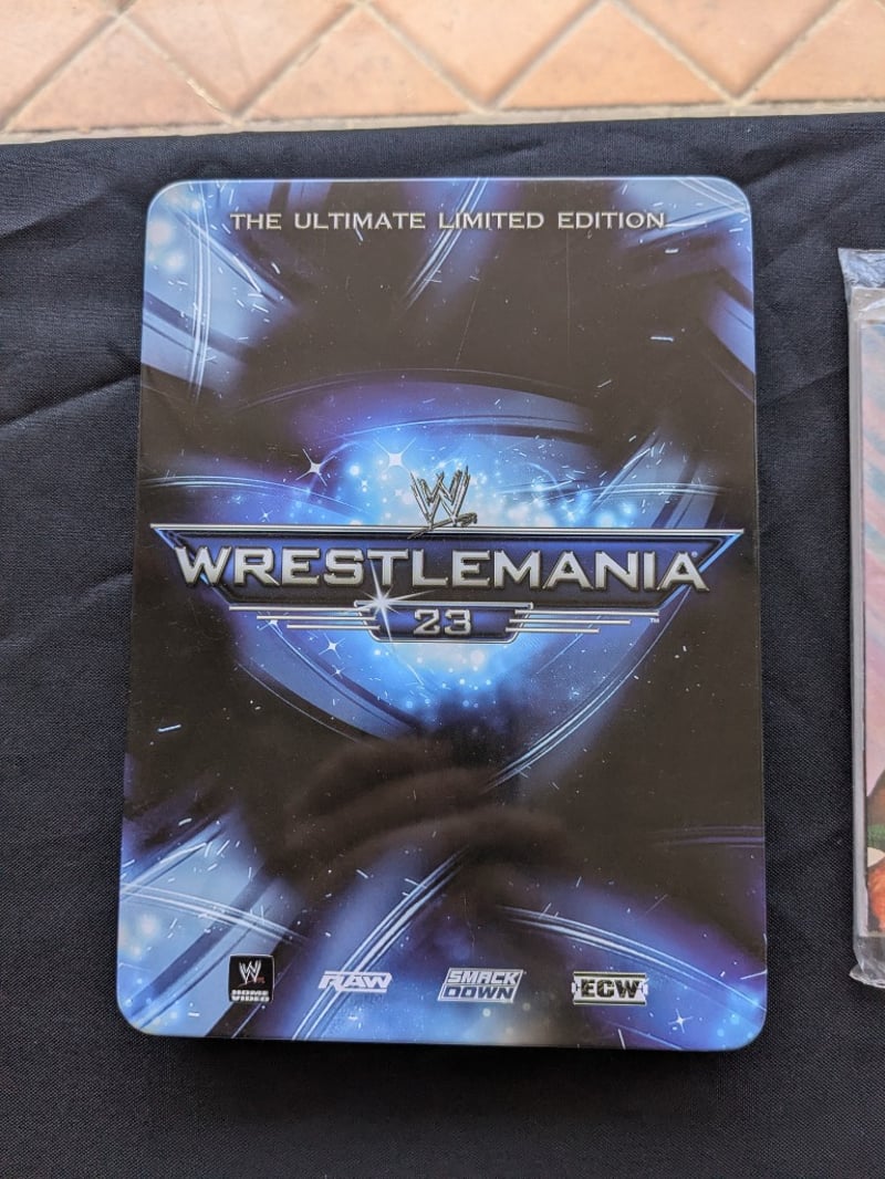 VINTAGE WWF WRESTLING MEMORABILIA LOT – WRESTLEMANIA V WATCHES, ULTIMATE WARRIOR, HULK HOGAN, BUSHWHACKERS Three Sealed Wrestlemania V Limited Edition Commemorative Digital Watches On Original Cards Dated Sunday Afternoon April 2, 1989, Each Labeled “5 Function Quartz Watch” With Wwf Branding And Titan Sports Copyright. Also Included Is A Wwf Wrestlemania 23 Limited Edition Steelbook Dvd Case, A Wrestlemania Iii Commemorative Framed Film Cell Display, And A Sealed Ultimate Warrior Greeting Card Pack And Multiple T-Shirts Condition: Good - Refer To Images SR 233570+11