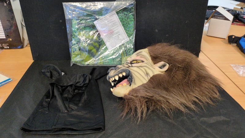 ASSORTED BLOCKBUSTER PROMOTIONAL ITEMS 1X Inflatable Godzilla, 1X Warewolf Mask, 1X Black Mask Condition: Good - Refer To Images SR 233570+36