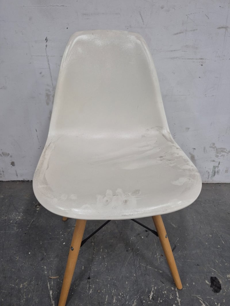 Dining Table White Plastic with wooden legs Missing one bolt on the legs Dimensions:H80CMxL40CMxW45CM