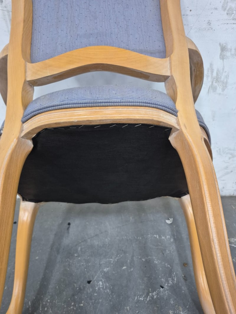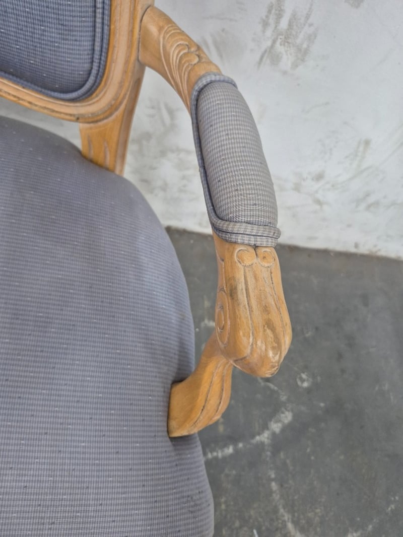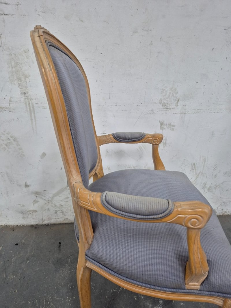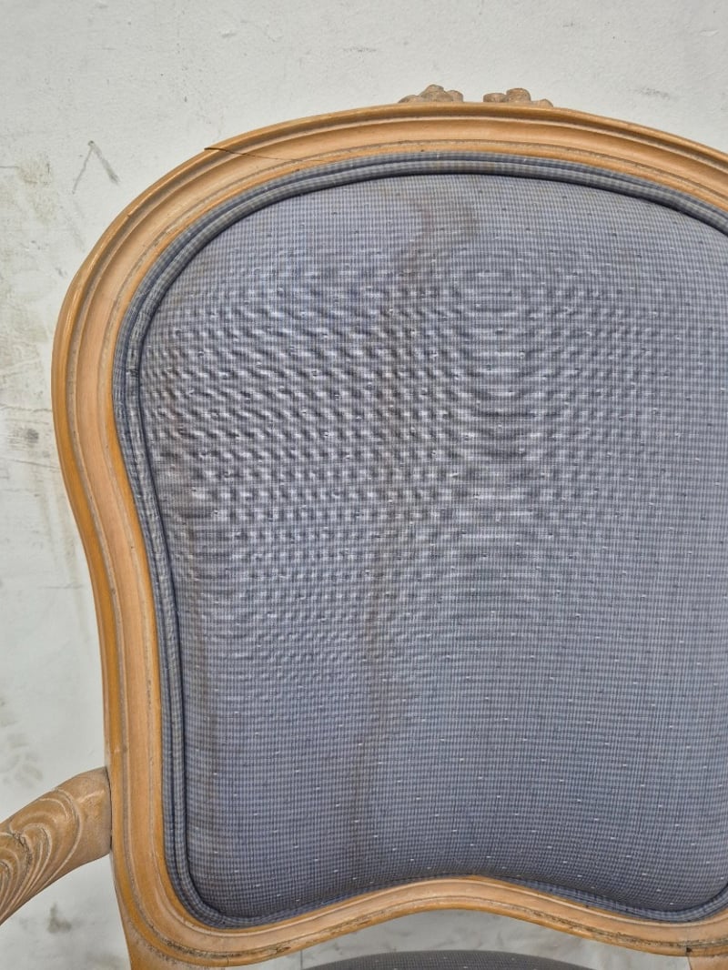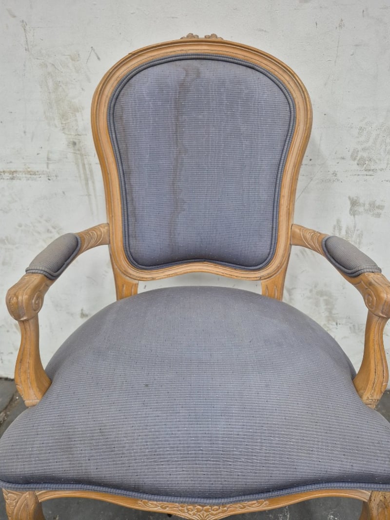 Dining Chair Vintage Styled, Faded Fabric Cushioning, Wooden Legs Condition May Vary Dimensions: H100CMxL55CMxW50CM BID PER EACH
