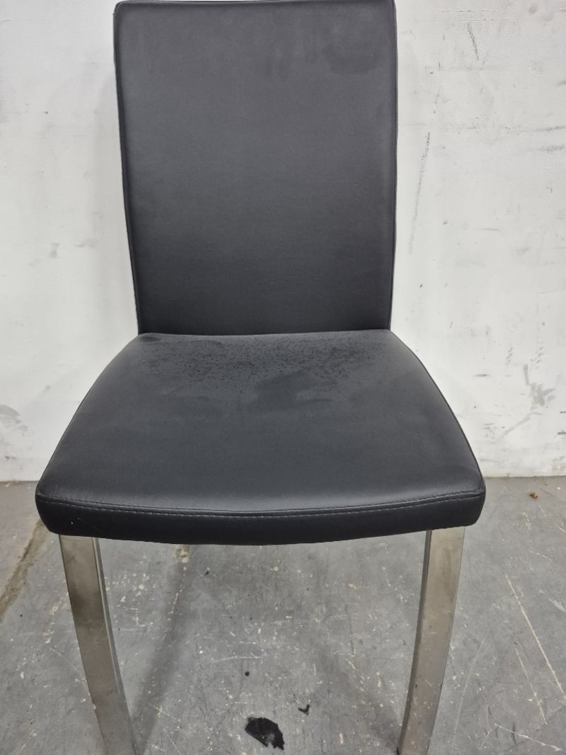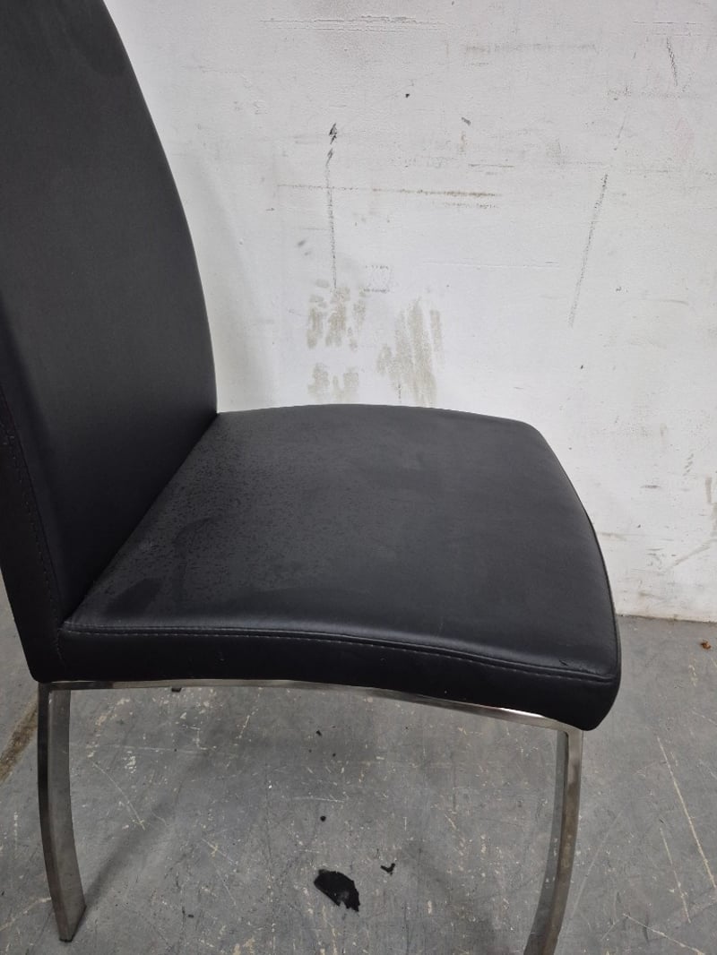Dining ChairBlack Leather with metal legsCondition May VaryDimensions: H80CMxL45CMxW45CMBID PER EACH