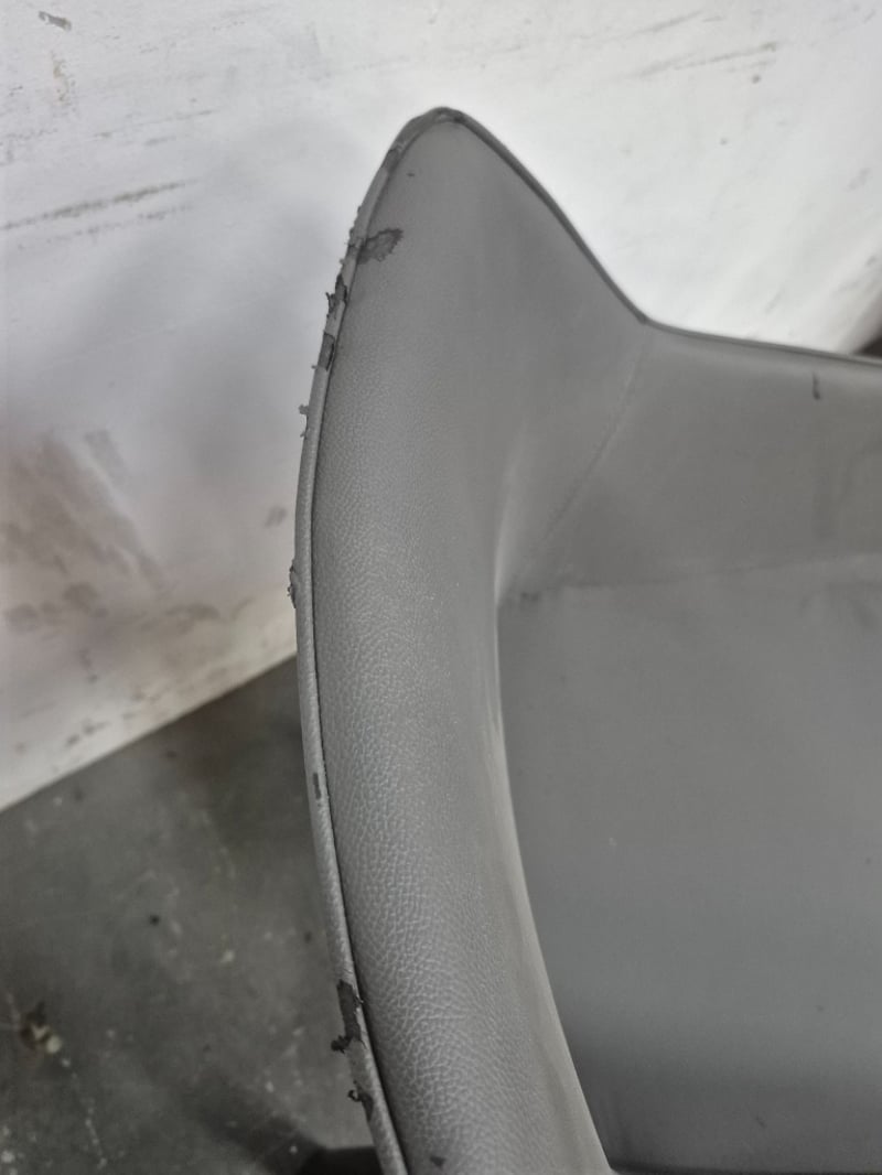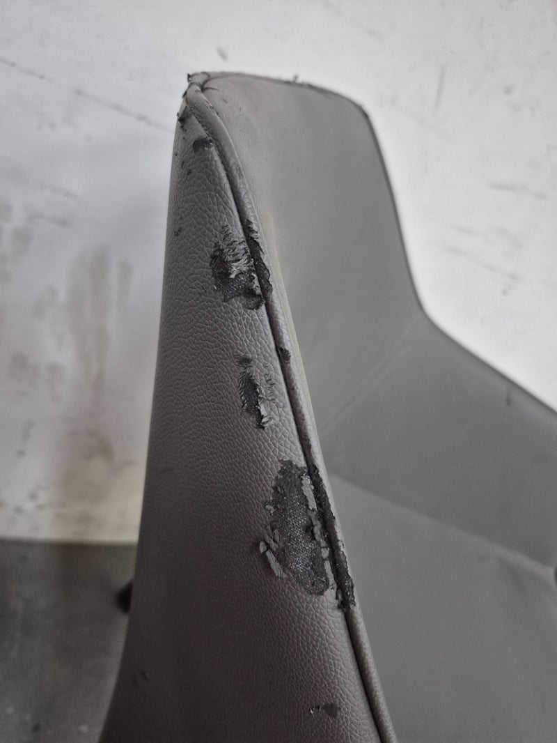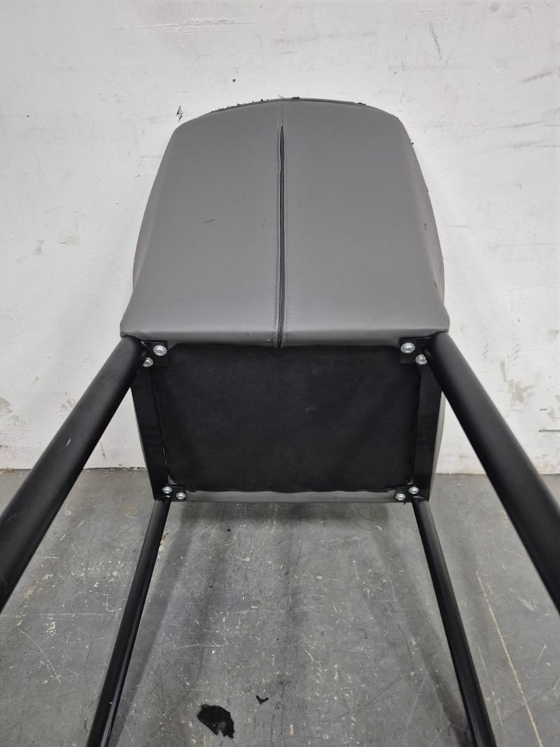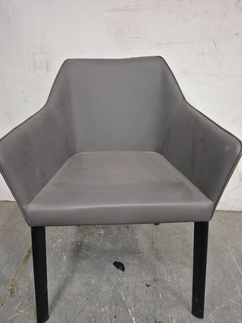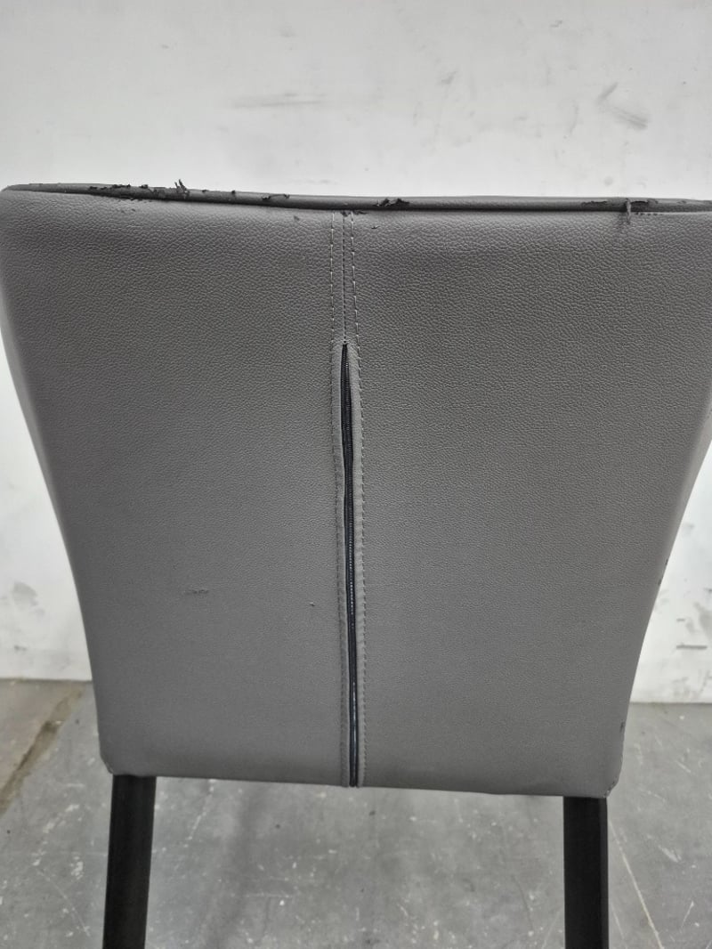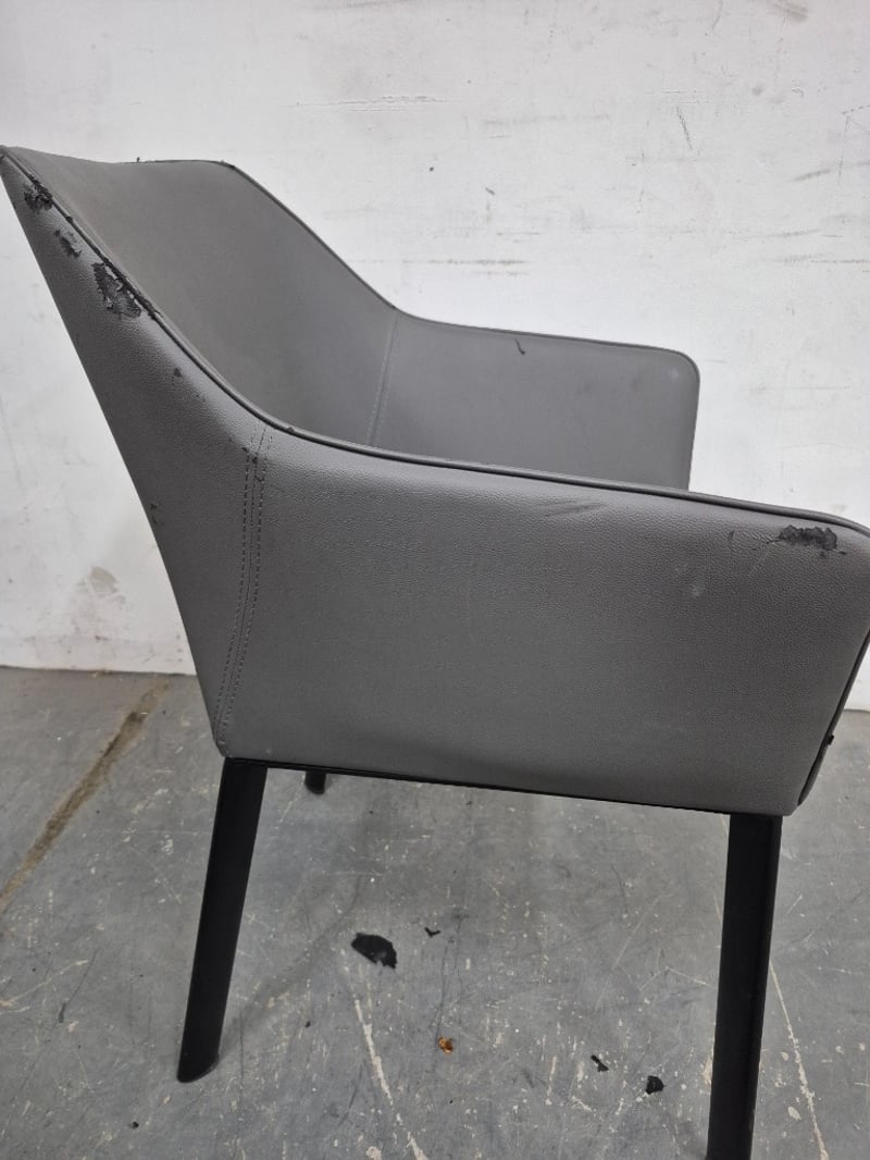Dining Chair Dark Gray Pleather, with black metal legs In worn condition, refer to images Dimensions: H80CMxL50CMxW55CM