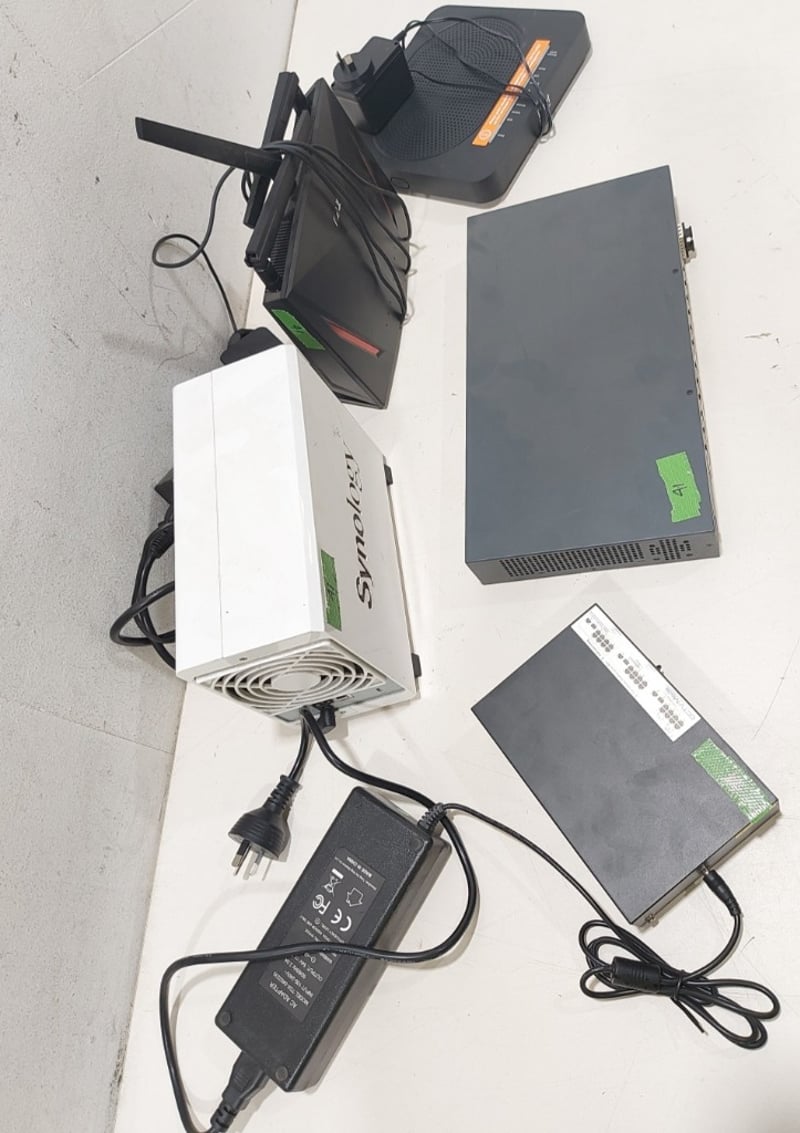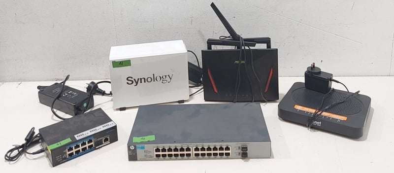 Networking Equipment - including Asus gigabit router, Synology Diskstation DS214se 2 bay NAS, Technicolor broadband gateway, Utepo ethernet switch.