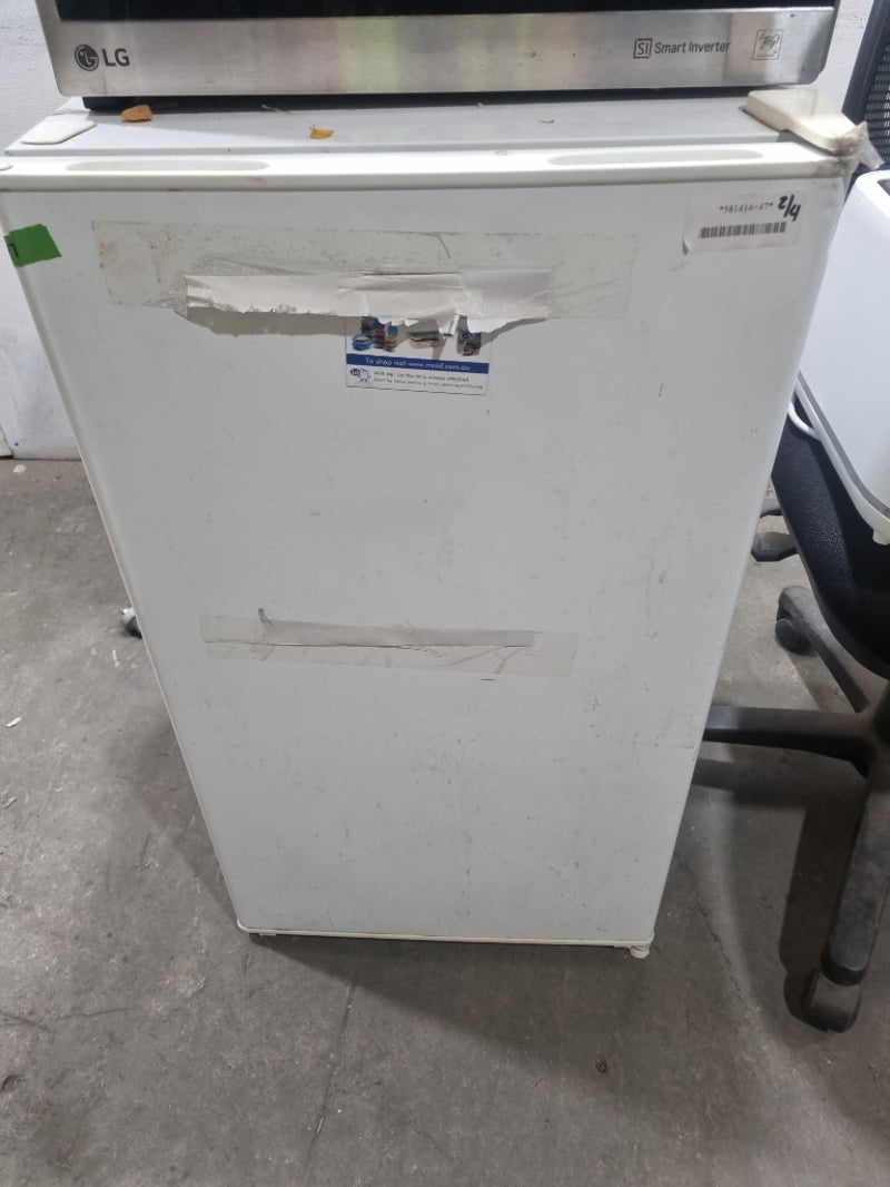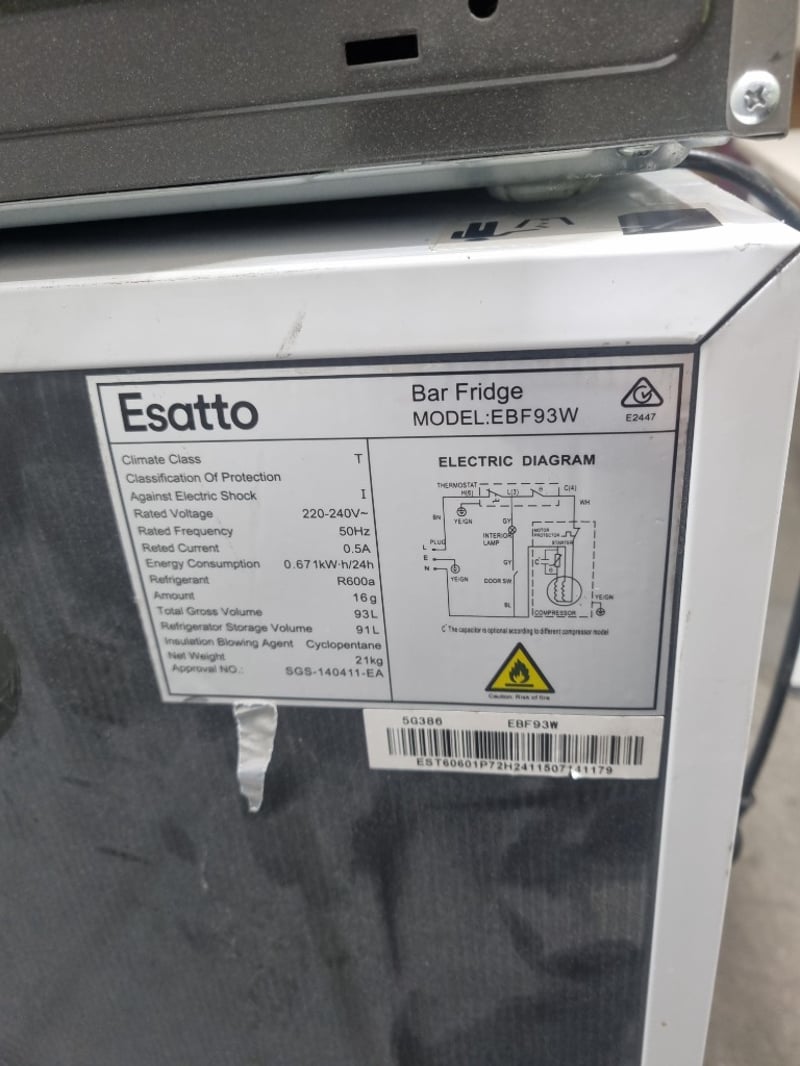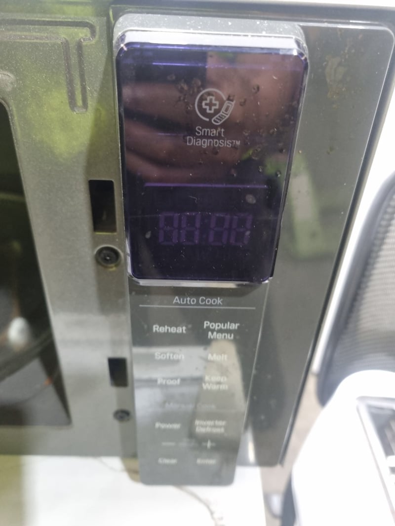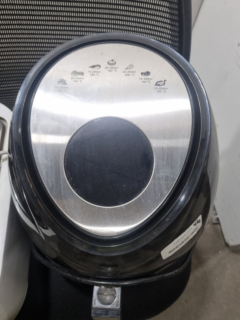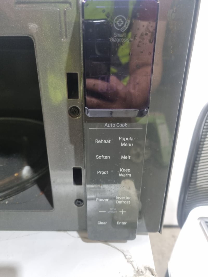 Appliances and kitchen items, including toaster, air fryer, LG microwave oven and Esatto bar refrigerator