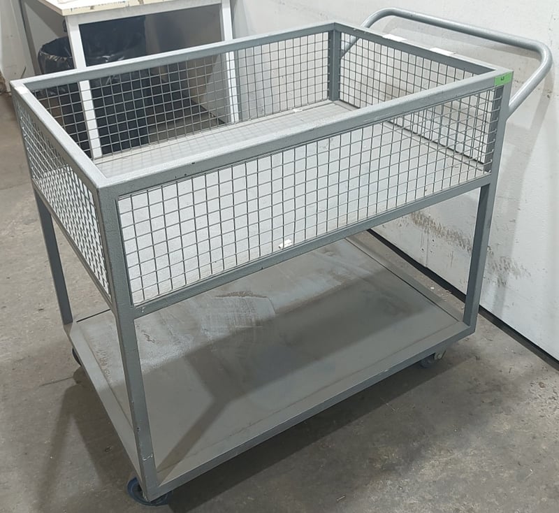 Stock Cart - Grey steel and mesh, 2-tierNote: signs of wear.
