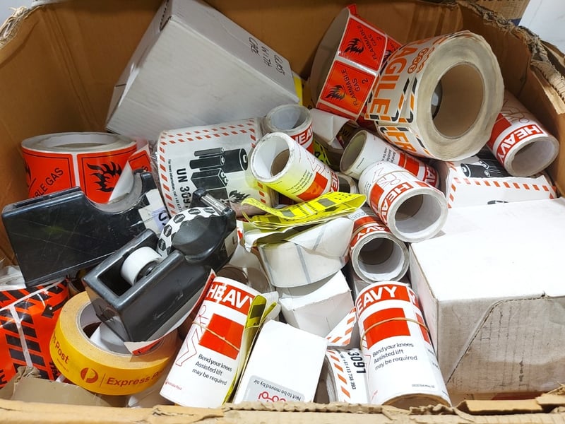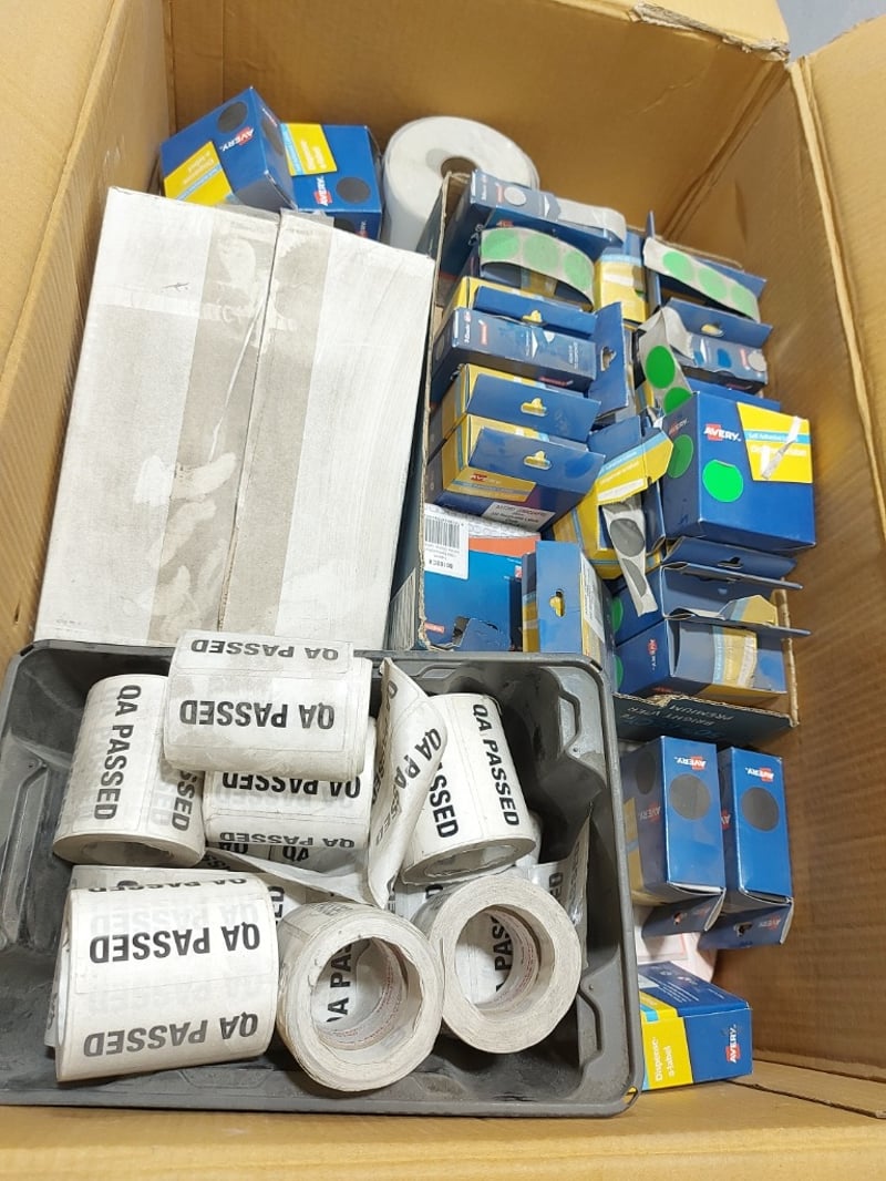 Tape & Label Stocks - Including boxes of 4000 labels, assorted rolls of labels, rolls of paper, rolls of tapeSold as lot