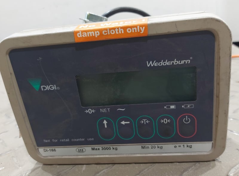 Pallet Platform Scale - Wedderburn WS-01 (P1212MC2000) platform load cell, 3000kg max., S/N: 18P417009with Digi DI-166 LCD digital load indicator, 20g-3000kg @ 1kg, S/N: 18612647