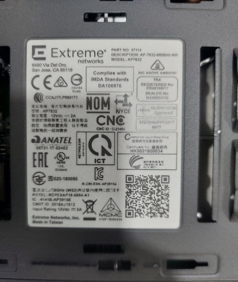WiFi Access Points - Extreme Networks AP-7632-680B40-WR with ceiling mount bracket Note: Untested, Signs of wear. Bid per each. Qty 5.